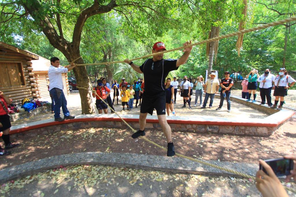 En su estancia por el centro turístico rural, se reunió con un grupo de boy scout y padres de familia con quiénes participó en diversas actividades e intercambió experiencias de su infancia en la práctica de esa disciplina.