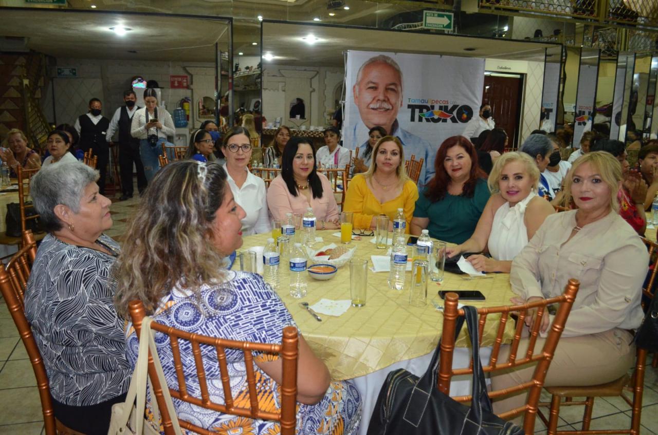 Ante una nutrida representación de “Mujeres de Tamaulipas con Truko”, la esposa del candidato por la Alianza Va por Tamaulipas, César Verástegui Ostos, destacó están convencidos que, si las mujeres prosperan, Tamaulipas también prospera. “Nuestro estado está listo, nosotras las mujeres ya estamos listas, salgamos a pedir el voto, porque el truco es estar unidas”, dijo.