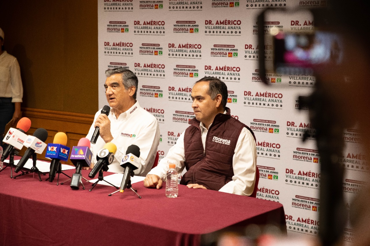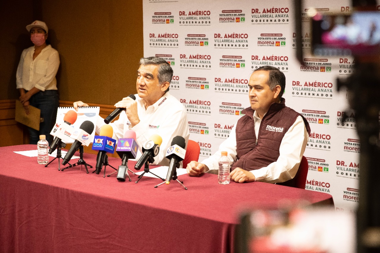 El candidato común de Morena- PVEM - PT detalló ante los medios de comunicación que en estas dos semanas de campaña, ha visitado 14 municipios y las encuestas lo favorecen en todo el estado; “vamos 2 a 1 global, pese a la guerra sucia”.