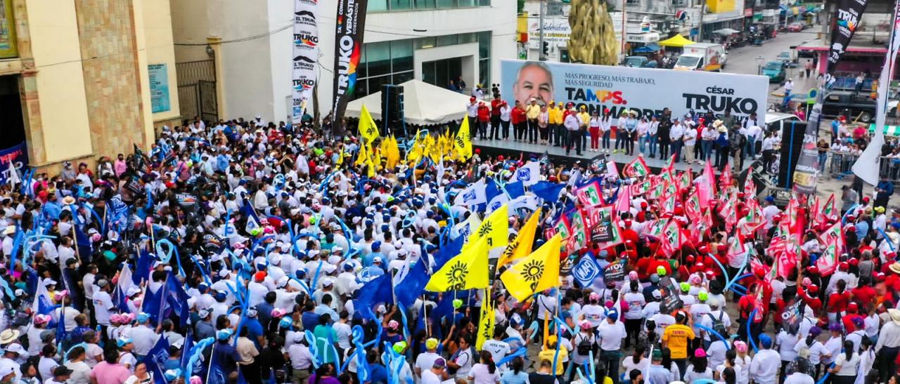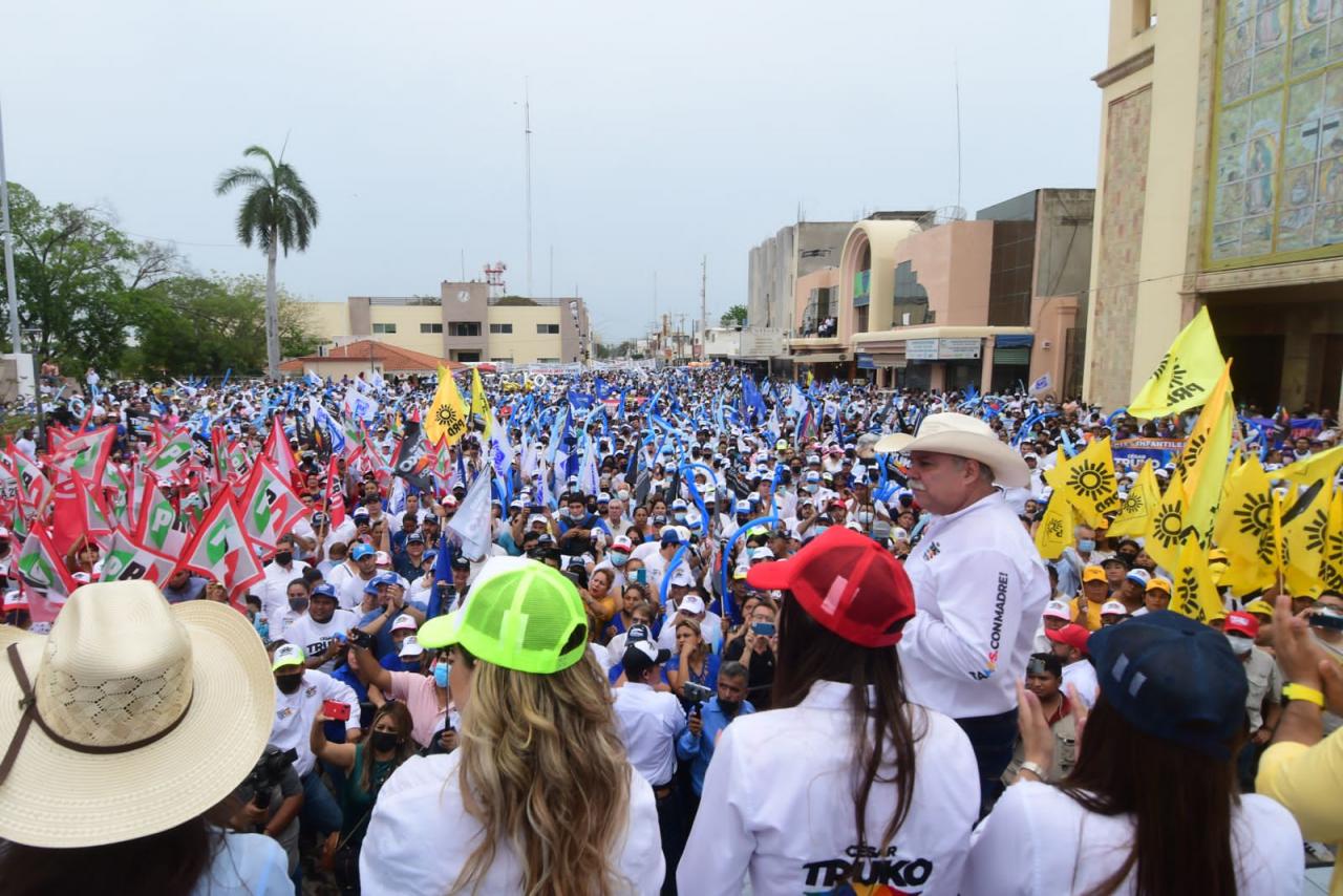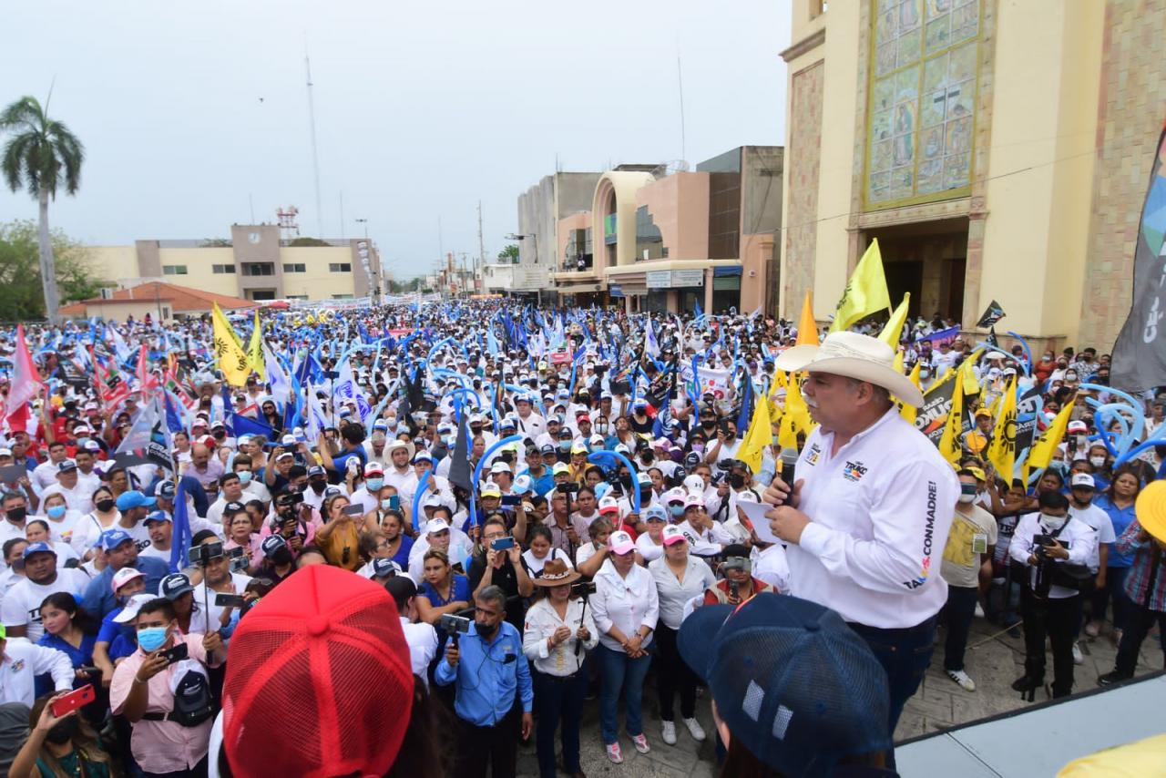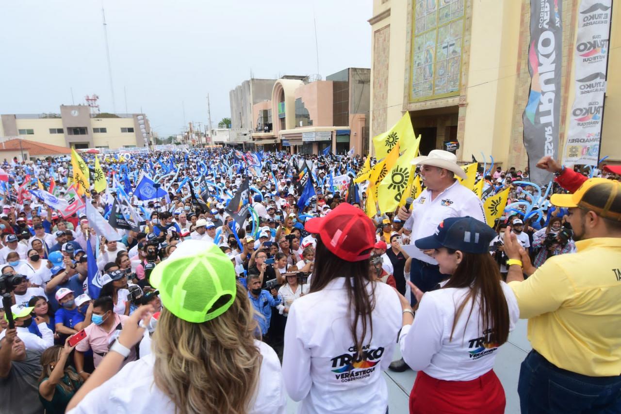 Mante, Tam. – Más de 15 mil personas se concentraron en la plaza principal para escuchar el mensaje del candidato, Cesar El Truko Verástegui de quien remarcaron se sienten orgullosos porque están seguros de que será el próximo gobernador