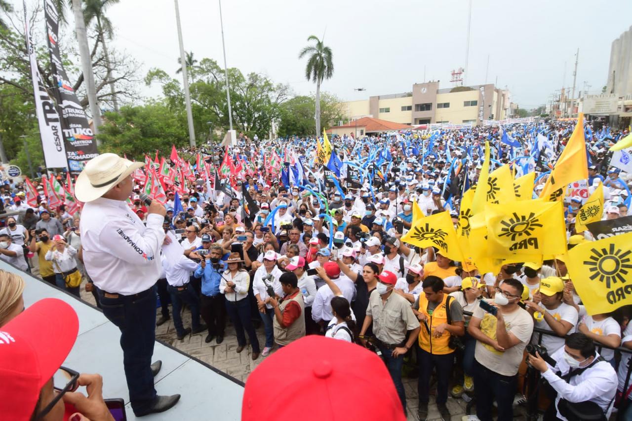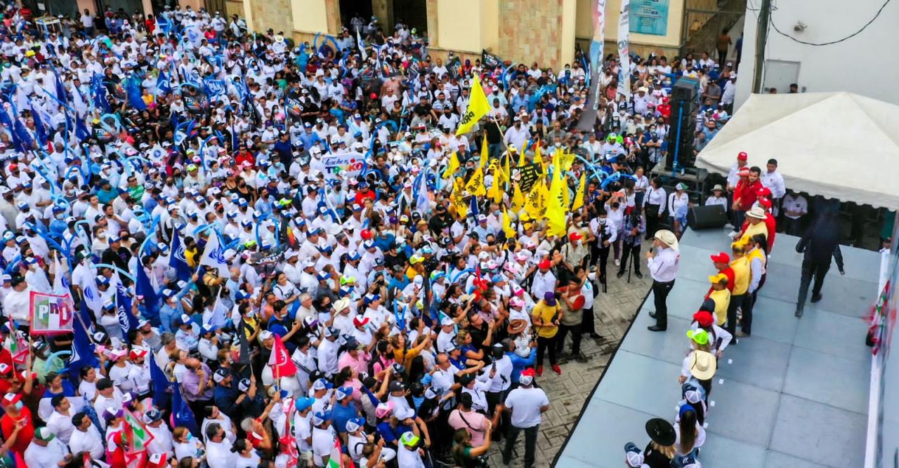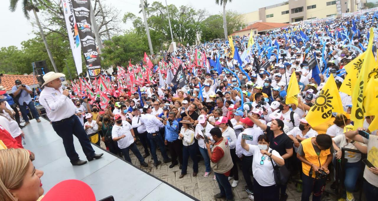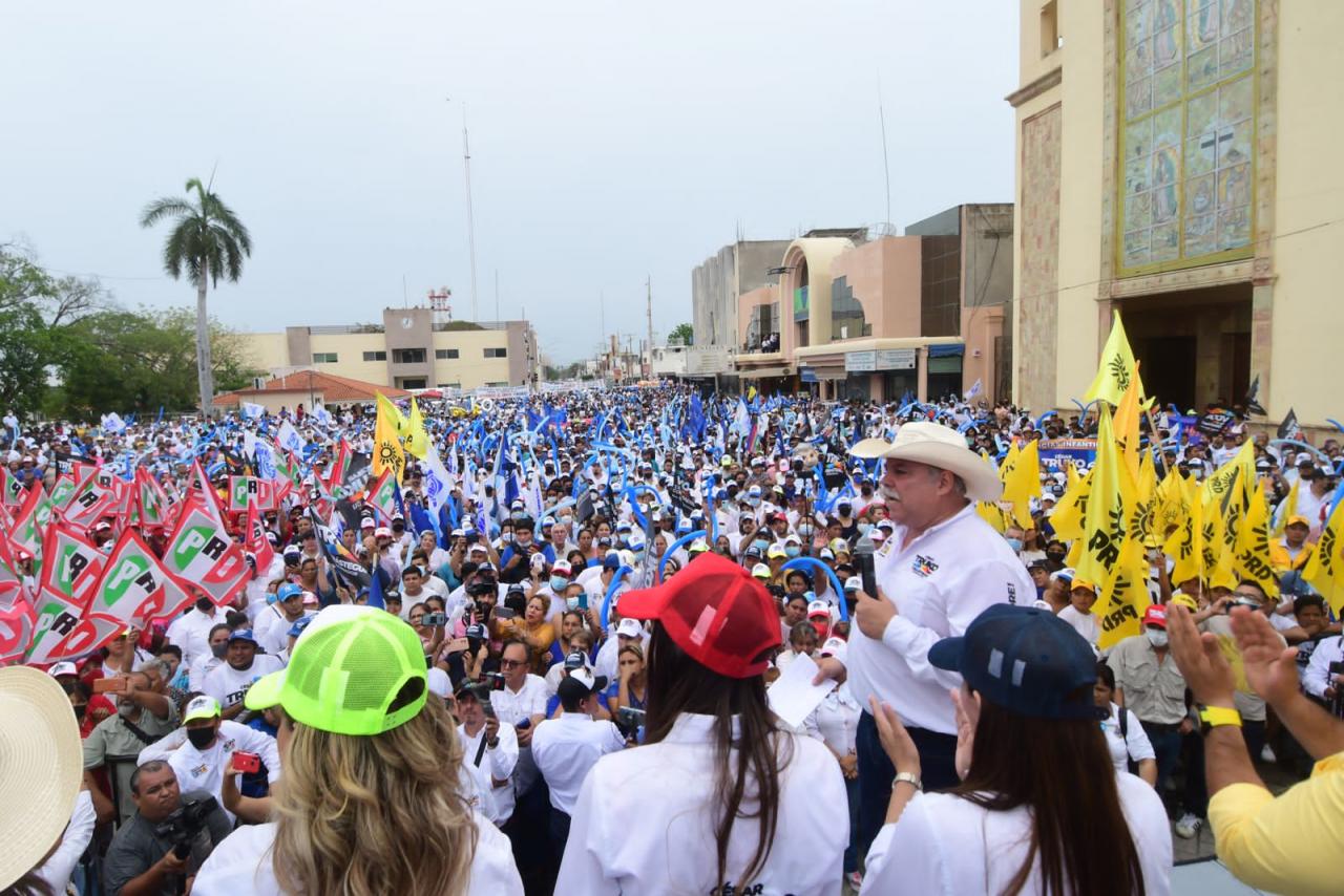 Mante, Tam. – Más de 15 mil personas se concentraron en la plaza principal para escuchar el mensaje del candidato, Cesar El Truko Verástegui de quien remarcaron se sienten orgullosos porque están seguros de que será el próximo gobernador