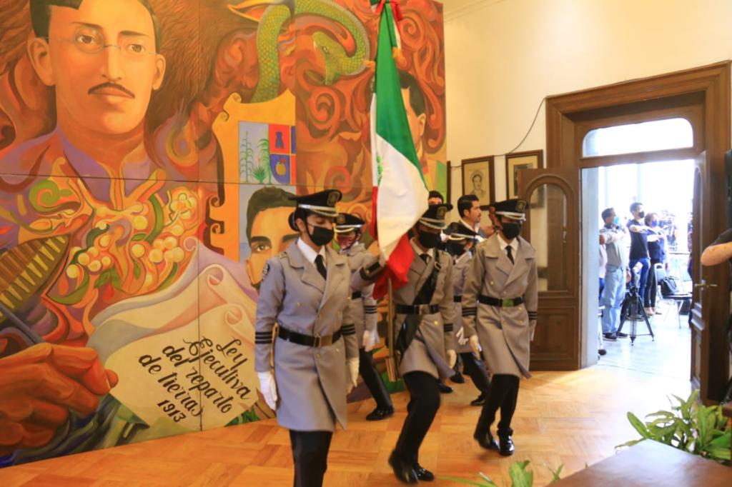 En la ceremonia cívica celebrada durante la sesión pública solemne en la sala de Cabildo, en la que se rindió honores a la bandera nacional y de Tamaulipas, la regidora Laura Xóchitl Casamitjana dio lectura al decreto de 1825 que dio la condición de Capital a Ciudad Victoria.