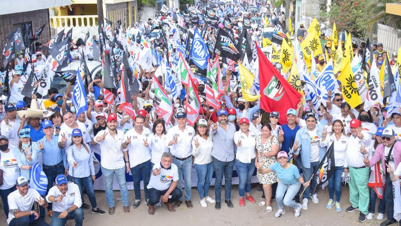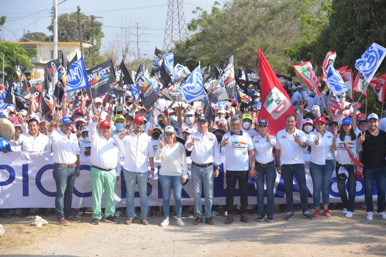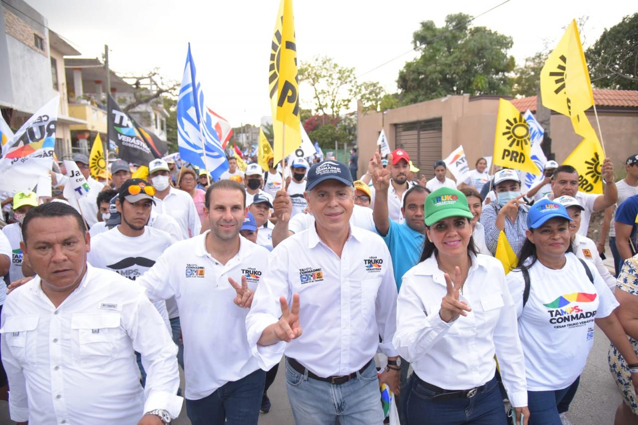 La colonia Solidaridad, Voluntad y Trabajo de Tampico brindará su respaldo a César Verástegui “El Truko”, candidato a Gobernador de Tamaulipas por la alianza “Va por Tamaulipas”, como quedó de manifiesto durante el recorrido sin candidato que el primer panista de Tampico Chucho Nader realizó por el sector la tarde de este domingo, acompañado por los diputados locales Mon Marón, Nora Gómez y la diputada federal Rosa González.