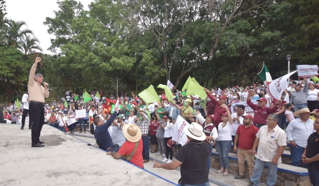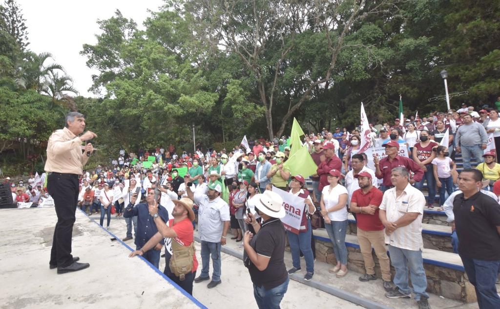GÓMEZ FARÍAS, Tam.- Desde la puerta de "El Cielo", rodeado de árboles y exigencias de cañeros que pedían en cartulinas el rescate del Ingenio de Xicoténcatl, el doctor Américo Villarreal Anaya, candidato de la coalición “Juntos Hacemos Historia”, propuso decirle adiós este 5 de junio a los gobiernos del PRIAN.