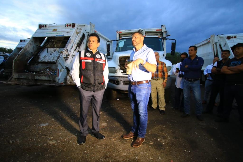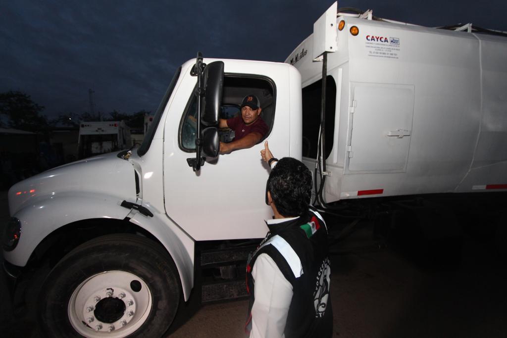 Este miércoles 27 de abril en el campamento de Limpieza Pública el alcalde Eduardo Gattás Báez dio el banderazo de salida a 25 camiones hidráulicos, 4 tanquetas y 1 camión de volteo que garantizan el servicio de recolección de basura en las 62 rutas que recorren la ciudad y que presentara deficiencias en días pasados por fallas en sus unidades.