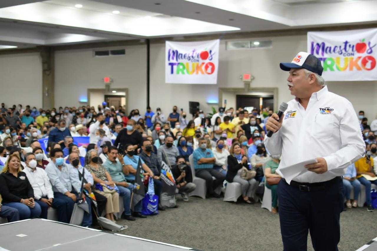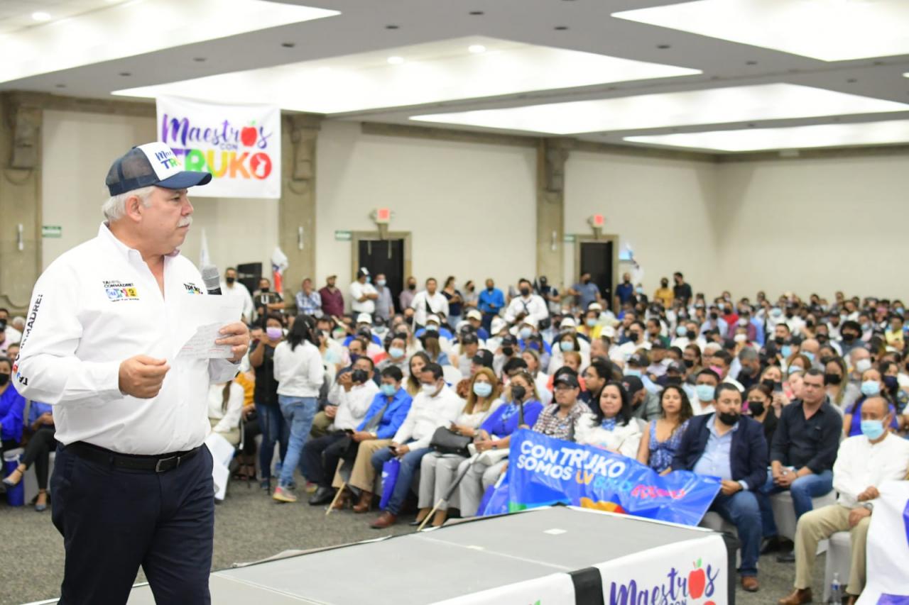Los docentes en activo, jubilados, y de los diferentes niveles educativos al grito unísono de “Truko gobernador”, recibieron entre banderas y parabienes al candidato de la Coalición “Va por Tamaulipas”, para acto seguido, iniciar con un encuentro en el que se abordaron las áreas de oportunidad que este sector tiene.
