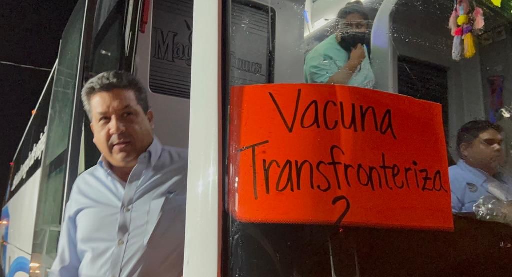 El Gobernador del estado , Francisco García Cabeza de Vaca sorprendió esta madrugada a padres de familia y menores de edad, así como a elementos de seguridad pública que se trasladaban en autobuses para cruzar a Estados Unidos y recibir la dosis contra COVID -19 dentro del programa de “Vacunación Transfronteriza” .