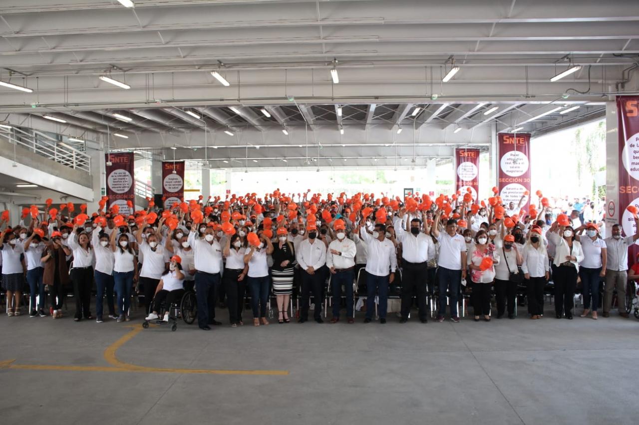 En este evento efectuado en las instalaciones del SARTET, participó el Profesor Jorge Miguel Cota Katestein, representante del CEN del SNTE en la Sección 30, Liliana Castillo Reyes, Secretaria de Organización, entre otras autoridades estatales, municipales, trabajadoras y trabajadores de la educación.