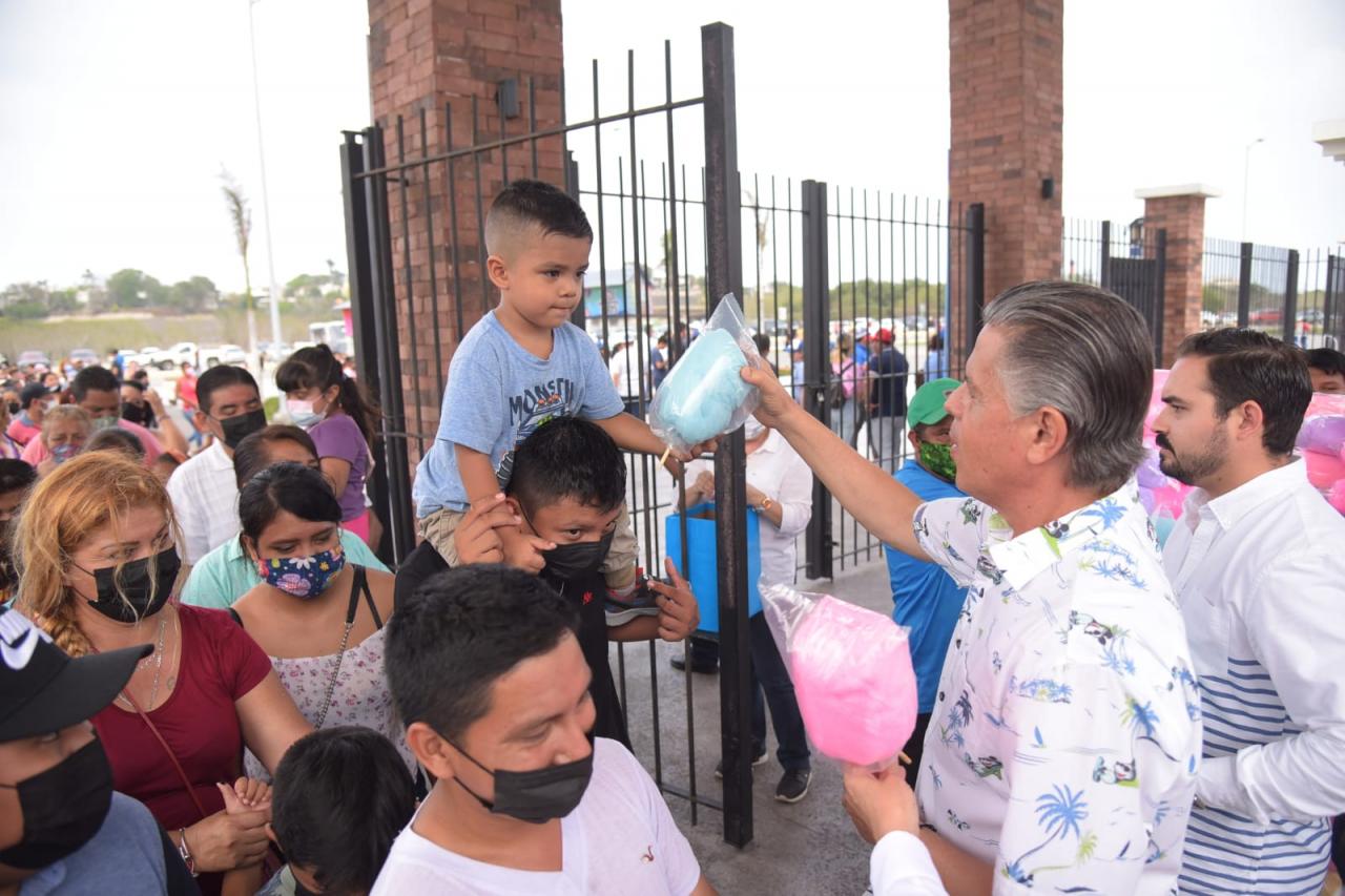 El Alcalde porteño Chucho Chucho Nader, acompañado de su esposa, Aída Féres de Nader recibieron a cada niño al acceso del recinto con un obsequio especial y un algodón de azúcar, refrendando el cariño y compromiso con la niñez tampiqueña.