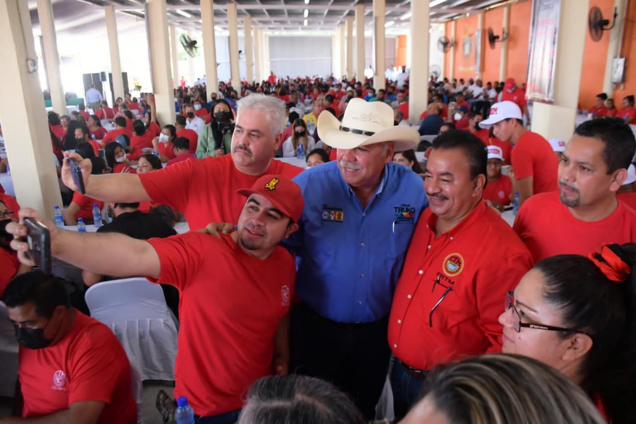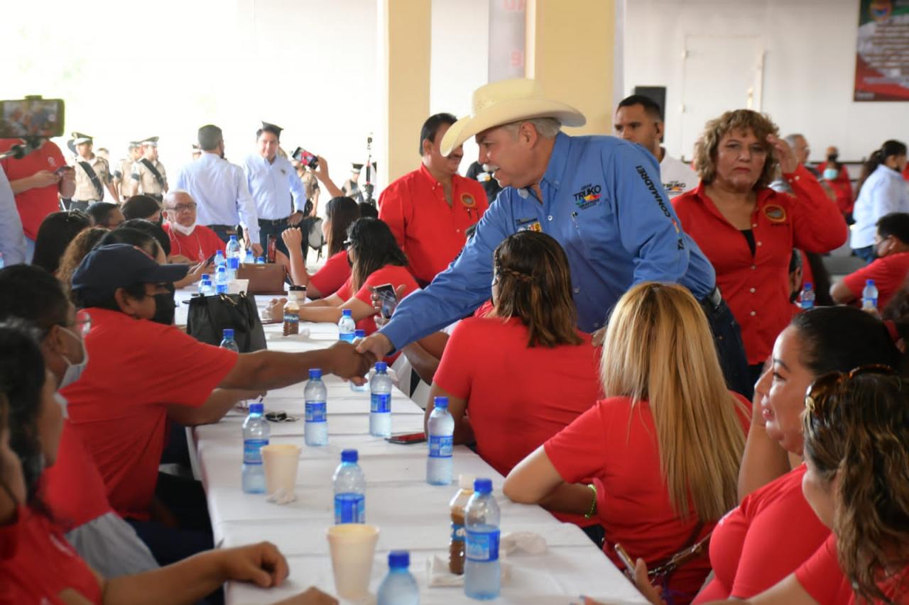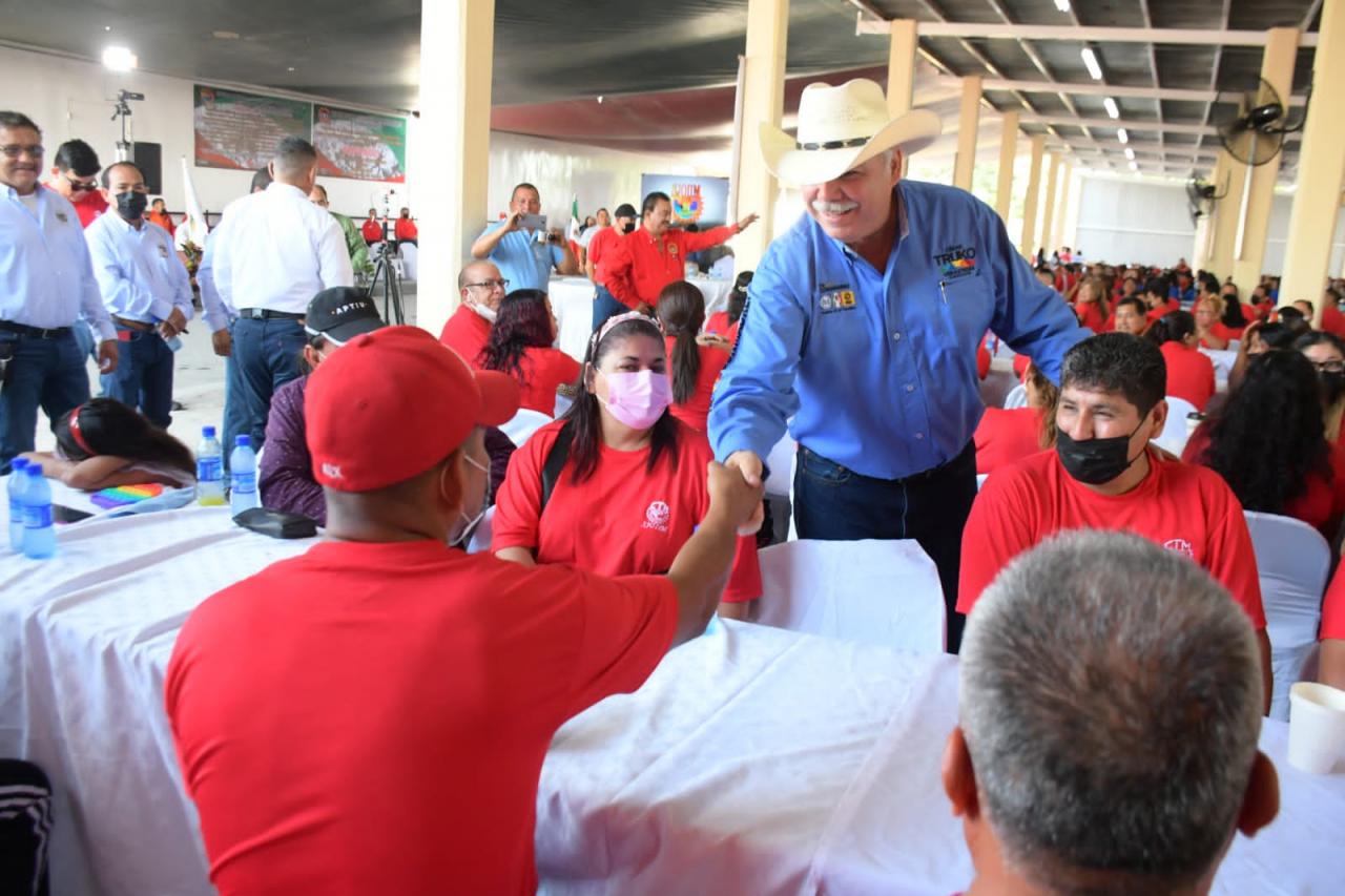 A los trabajadores en su día, les dijo que contarán con su respaldo como siempre lo ha hecho, garantizando la paz y la justicia laboral para que se les respeten sus derechos para que laboren en armonía.