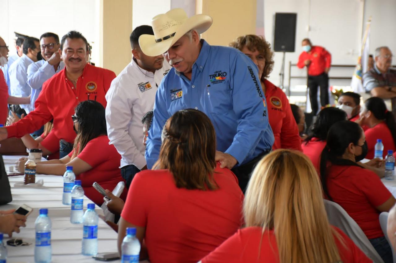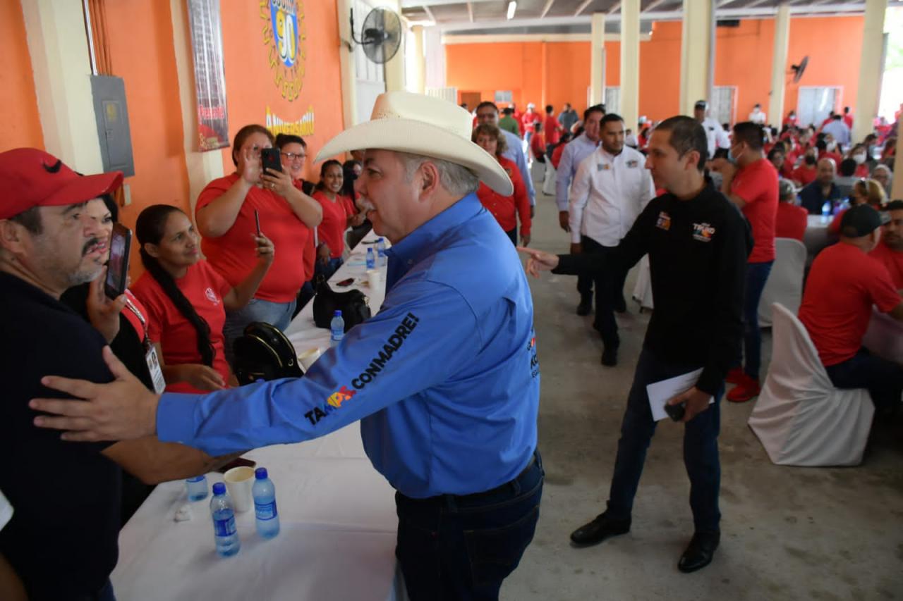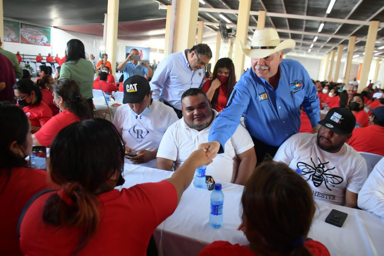A los trabajadores en su día, les dijo que contarán con su respaldo como siempre lo ha hecho, garantizando la paz y la justicia laboral para que se les respeten sus derechos para que laboren en armonía.