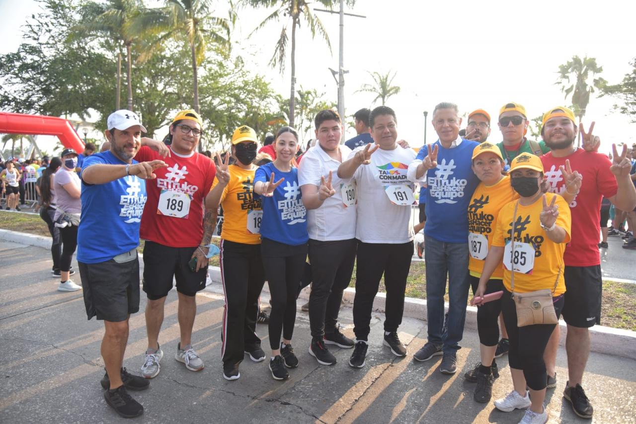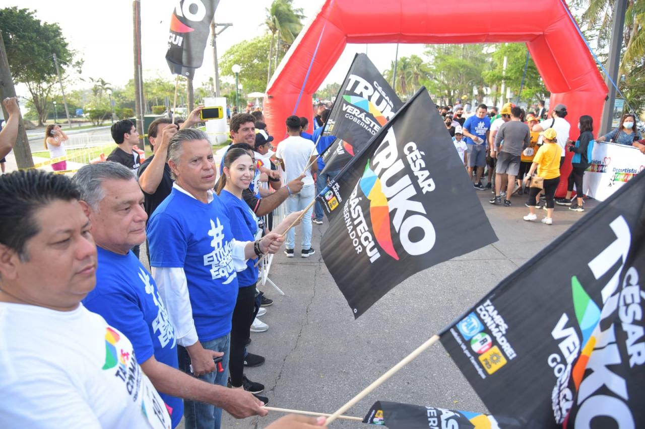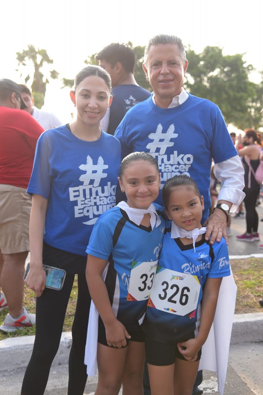 El evento fue presidido por la hija del candidato a gobernador, Martha Verástegui y el Alcalde porteño Chucho Nader, quien destacó la participación de personas de todas las edades y familias completas que se sumaron a esta actividad deportiva, cuyo propósito fue el de estimular la activación física de las personas.