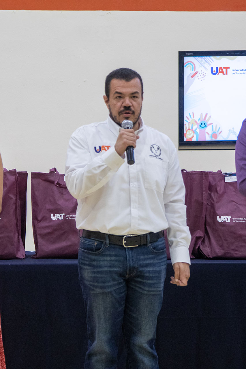 En el evento, el Rector estuvo acompañado de su esposa, la C. P. Imelda Sustaita de Mendoza; el Ing. Rafael Pichardo Torres, Secretario de Administración; la Mtra. Mirna Dalia Saavedra Merrem, Directora de Recursos Humanos; así como de Óscar Valdez Ávila, Secretario General estatal del SUTUAT, y Raymundo Tadeo Suarez, Secretario de la Sección Centro.