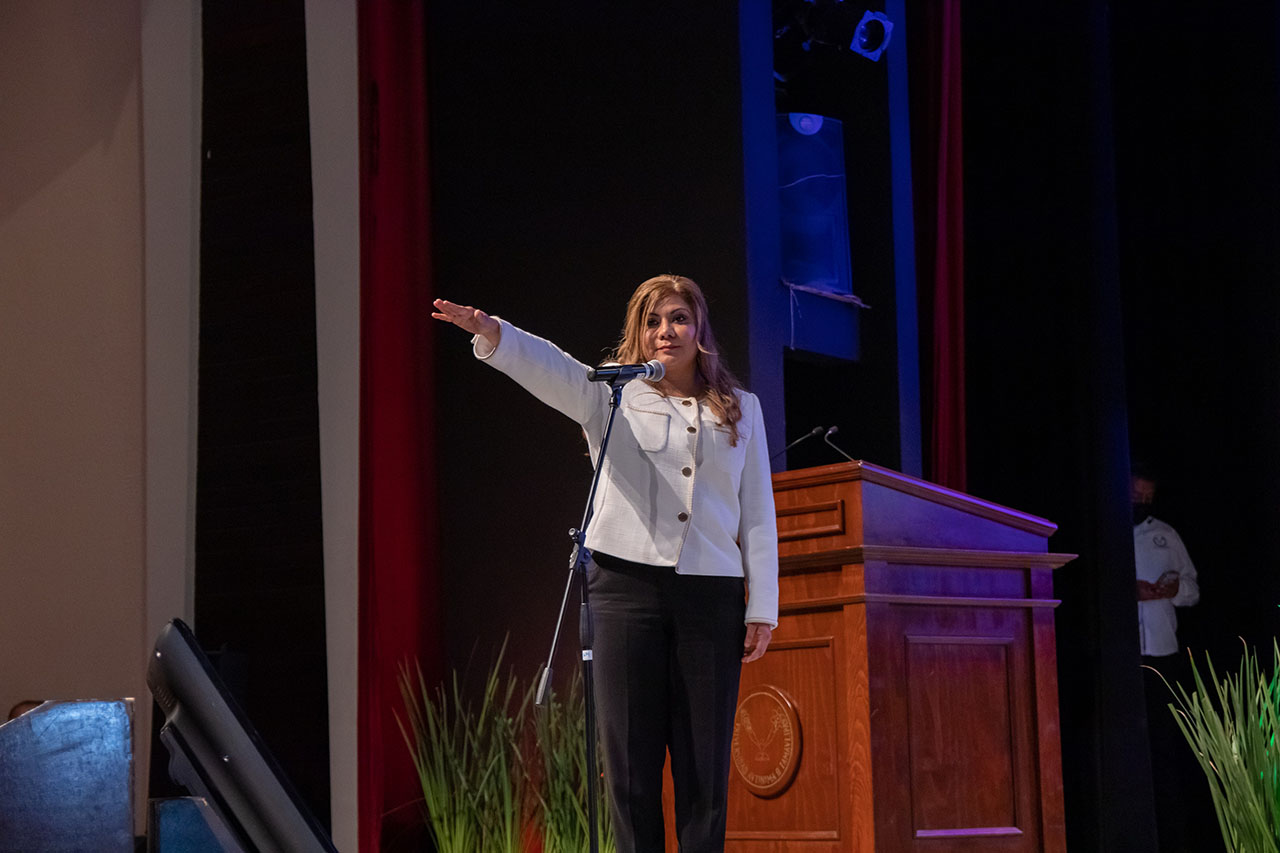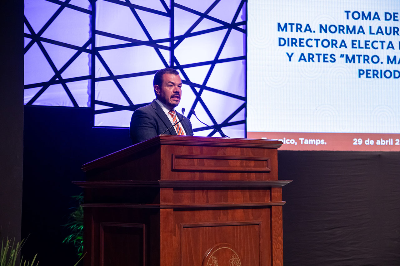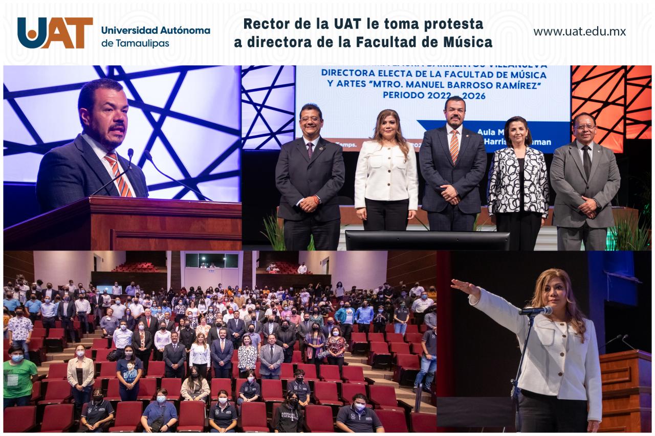 El C. P. Guillermo Mendoza Cavazos, Rector de la Universidad Autónoma de Tamaulipas (UAT), encabezó la toma de protesta de la Mtra. Norma Barrientos Villanueva como Directora de la Facultad Música y Artes "Mtro. Manuel Barroso Ramírez" por el período 2022-2026.