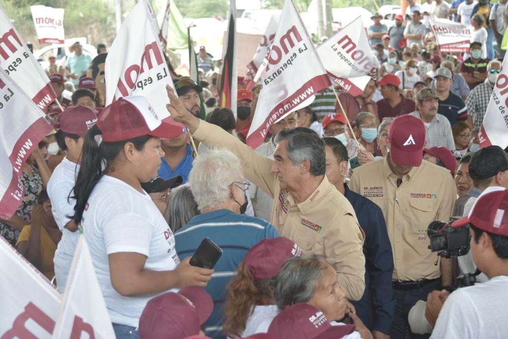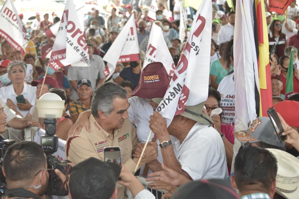 Desde una techumbre en el campo deportivo de la colonia El Tres, en el corazón cañero de Tamaulipas y tras escuchar una larga lista de quejas por el abandono y el agobio que han padecido en los recientes gobiernos los habitantes de este municipio, el candidato de Morena, PT y PVEM, aseguró que ya falta poco para lograr el cambio, la transformación y la esperanza para lograr un futuro mejor y un bienestar para todos.