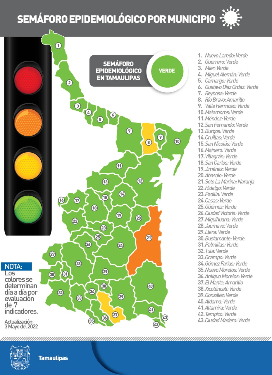 La dependencia destacó que las recomendaciones emitidas por el Gobierno de Tamaulipas para enfrentar la pandemia y la respuesta de la ciudadanía han sido fundamentales para disminuir contagios, hospitalizaciones y fallecimientos durante las últimas semanas, sin embargo, pidió no confiarse ni relajar las medidas de seguridad sanitaria.