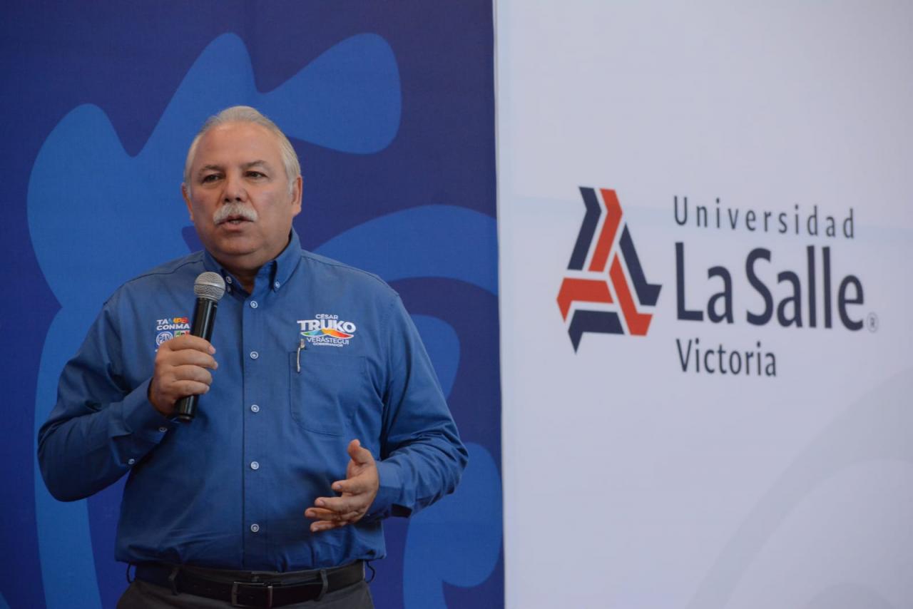 Cd. Victoria, Tam.- Esté jueves César Truko Verástegui sostuvo un encuentro con los estudiantes de las diversas carreras de la Universidad La Salle a invitación de la propia casa de estudios, donde presentó sus propuestas en materia de seguridad, salud, desarrollo económico, educación y oportunidades para jóvenes .