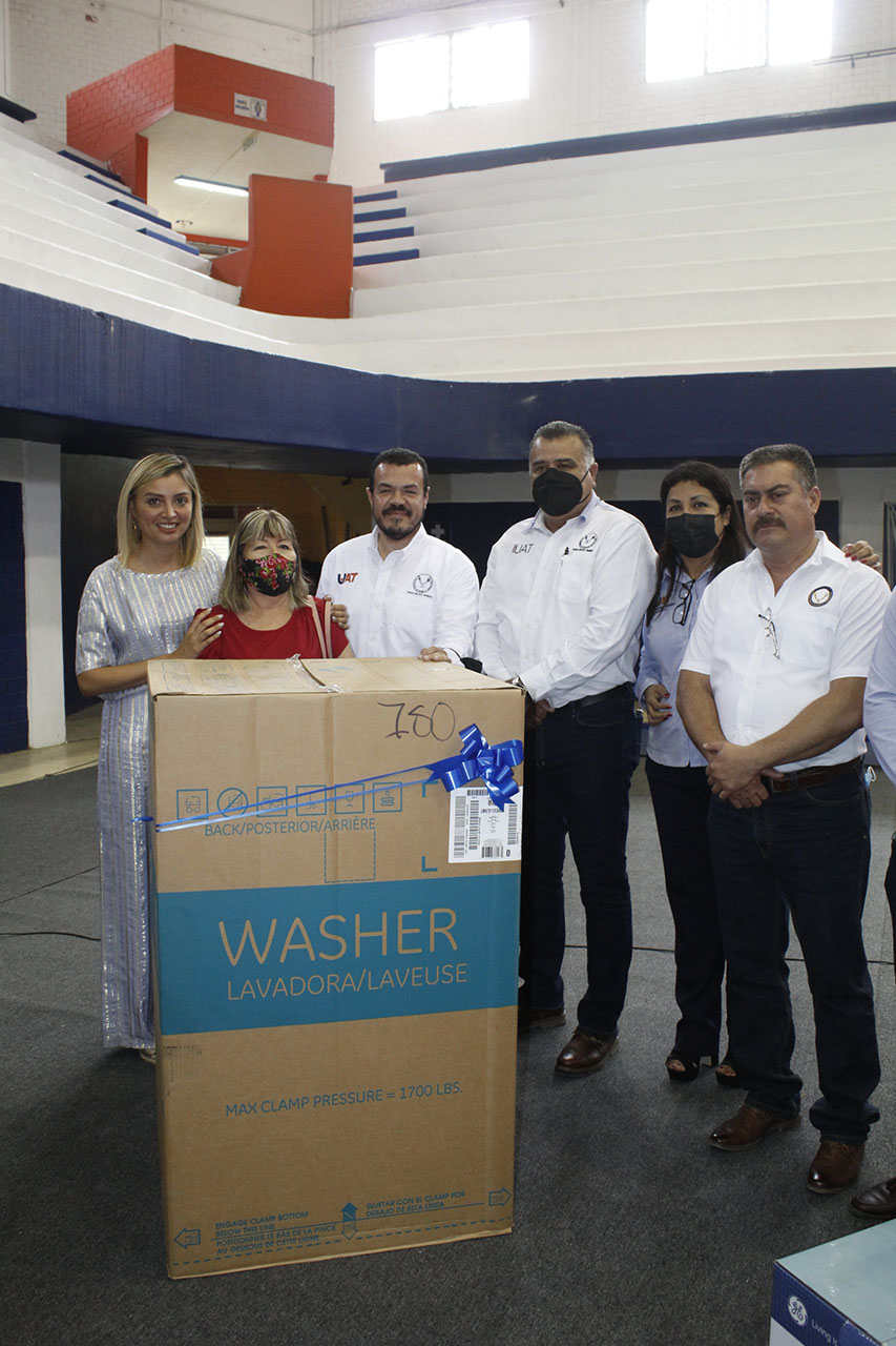 Como parte de los festejos que tradicionalmente ofrece la casa de estudios al Sindicato Único de Trabajadores (SUTUAT), acordados en el contrato colectivo laboral, el Rector y su esposa, la C. P. Imelda Sustaita de Mendoza, presidieron la entrega de obsequios que previamente se sortearon en beneficio de las madres sindicalizadas.