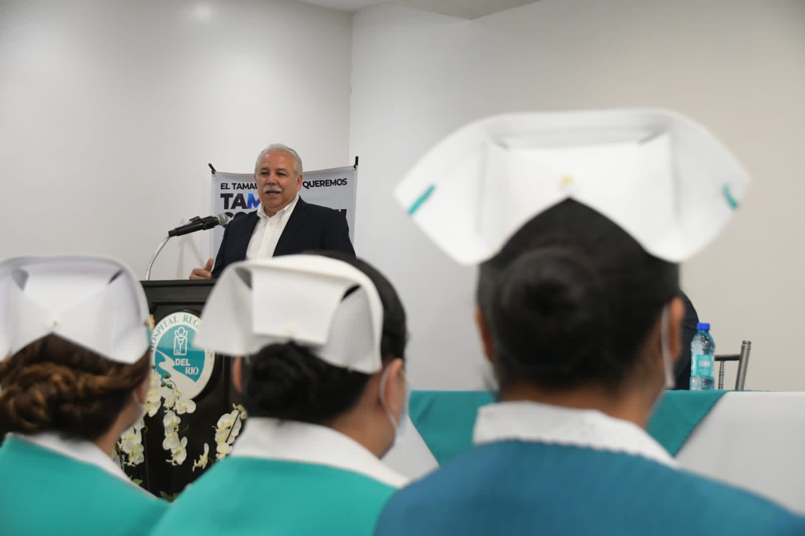 Reynosa, Tam. - Tras su participación en el foro organizado por el Consejo Coordinador Empresarial, donde presentó su plataforma a los integrantes de 16 cámaras empresariales y colegios de profesionistas, César Truko Verástegui se reunió con personal médico de este puerto fronterizo.