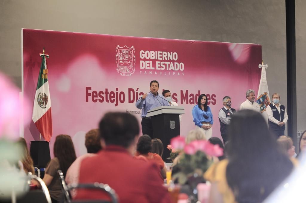 “Reconozco el labor que hacen ustedes como mamás, pero sobre todo el trabajo que hacen para educar a nuestros hijos; Mantener unidas a las familias que es la columna vertebral de una sociedad, ¿quien lo va a lograr?, ¿los hombres?, son ustedes por eso es que valoro tanto a las mujeres tamaulipecas y es por eso que hemos emprendido acciones a favor de las mujeres tamaulipecas porque estoy convencido de que son las únicas que pueden restablecer el tejido social educando bien a nuestros hijos, es donde vamos a seguir concentrando las acciones para apoyar las que hoy por hoy han mantenido de pie y unidas a las familias tamaulipecas”, señaló el mandatario.