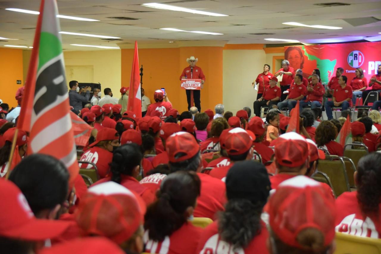 Por su parte, César Truko Verástegui, tras tomar protesta se dirigió a los promotores del voto y agradeció el respaldo de los priístas, a quienes les dijo, “honraré el nombre y el prestigio del PRI, así como el de los otros partidos que conforman la alianza ‘Va por Tamaulipas’. Tengan la seguridad de que no les voy a fallar, señaló ante los miles de militantes de este partido político en su reunión con ellos en la ciudad fronteriza.
