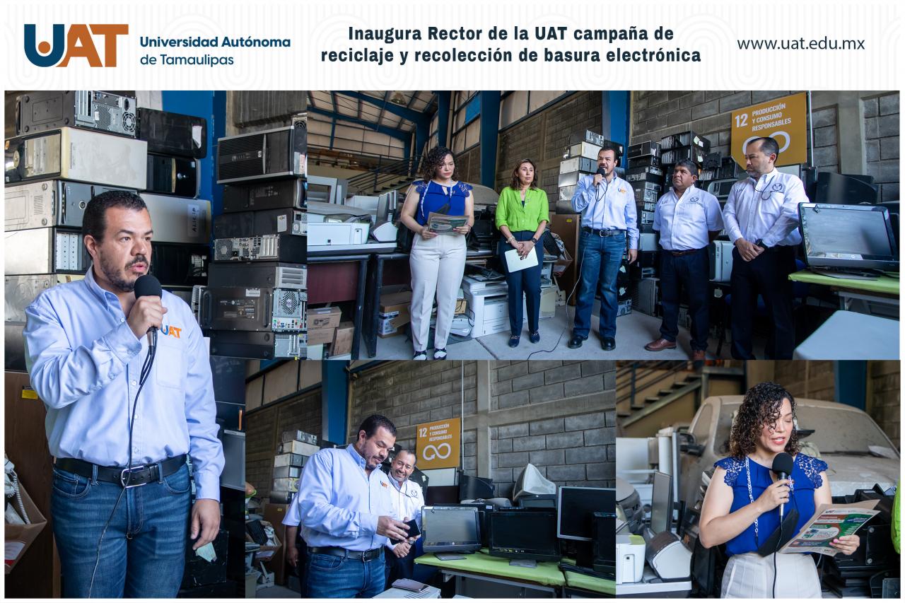 El C. P. Guillermo Mendoza Cavazos, Rector de la Universidad Autónoma de Tamaulipas (UAT), encabezó la presentación y arranque de la campaña institucional de recolección de basura electrónica y tecnología en desuso “Transformemos nuestros residuos en nuevos recursos”.