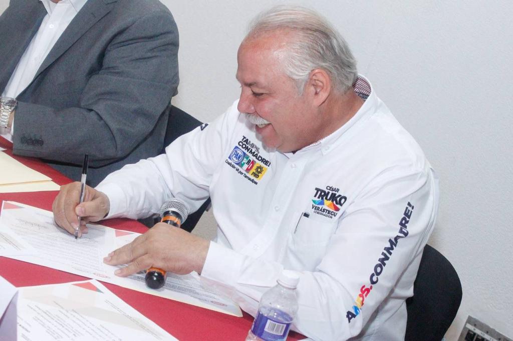 TAMPICO, Tam. - La Cámara Mexicana de la Industria de la Construcción recibió en Tampico, al candidato de la coalición "Va Por Tamaulipas", César Truko Verástegui, para exponerle sus propuestas y compromisos como uno de los sectores que más empleos genera, además de ser una fuerza con más de 400 afiliados tan sólo en Tamaulipas, de más de 10 mil empresas a nivel nacional.