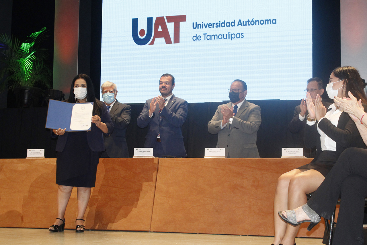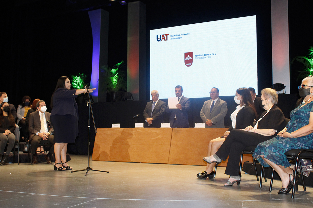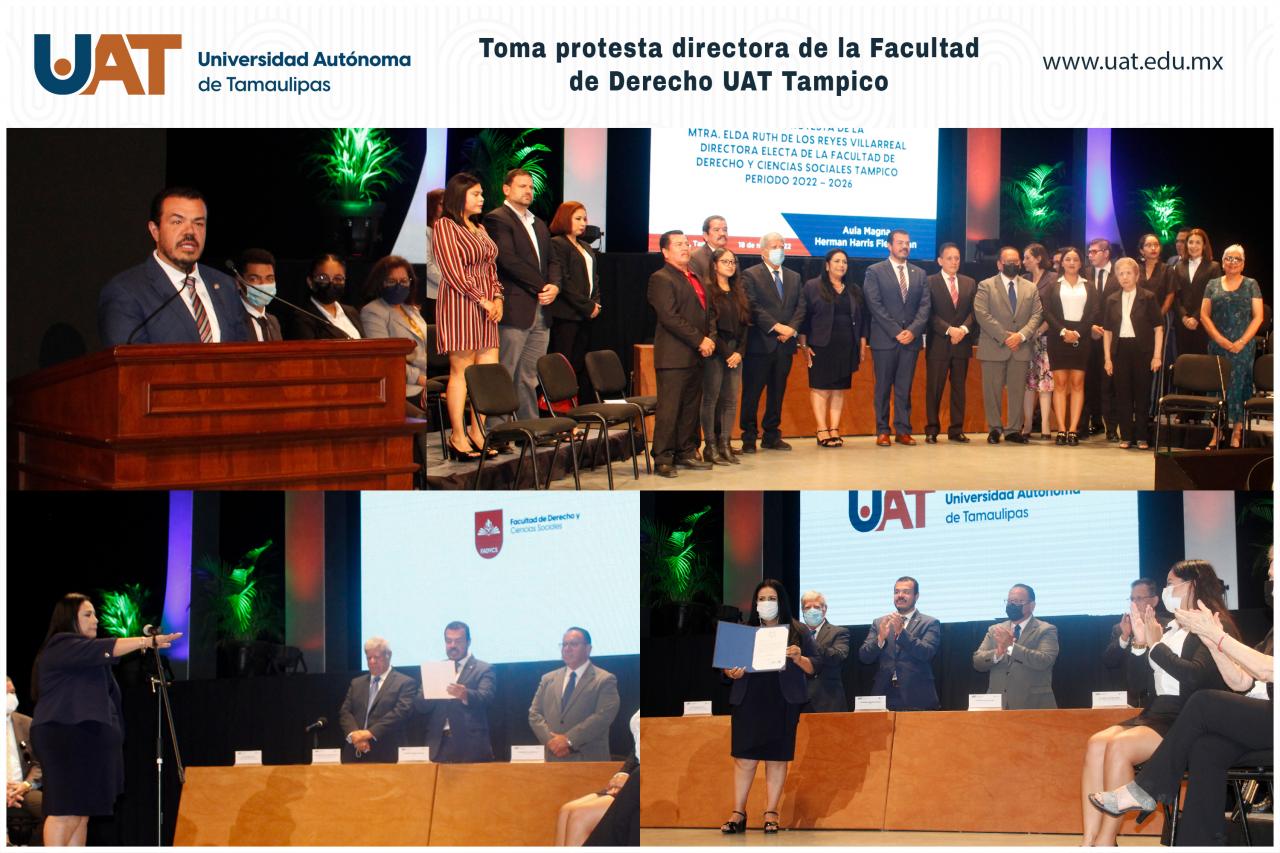El C. P. Guillermo Mendoza Cavazos, Rector de la Universidad Autónoma de Tamaulipas (UAT), encabezó la ceremonia de toma de protesta de la Mtra. Elda Ruth de los Reyes Villarreal como Directora de la Facultad de Derecho y Ciencias Sociales Tampico (FADYCS) para el periodo 2022-2026.