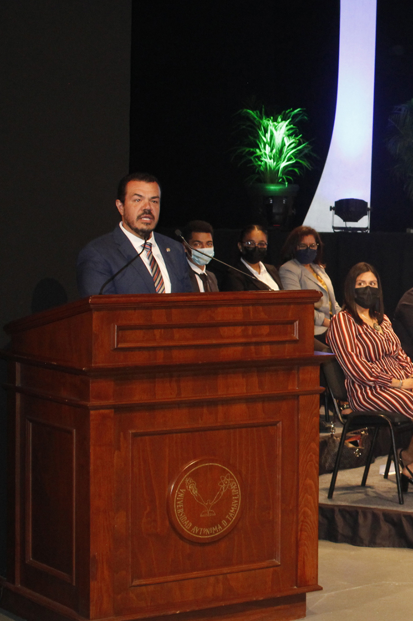 Durante su intervención, el Rector Guillermo Mendoza resaltó la importancia que tiene esta facultad al ser fundadora de la Universidad y precursora de la autonomía de la casa de estudios, piedra angular de la base del desarrollo de la UAT en todo el estado.