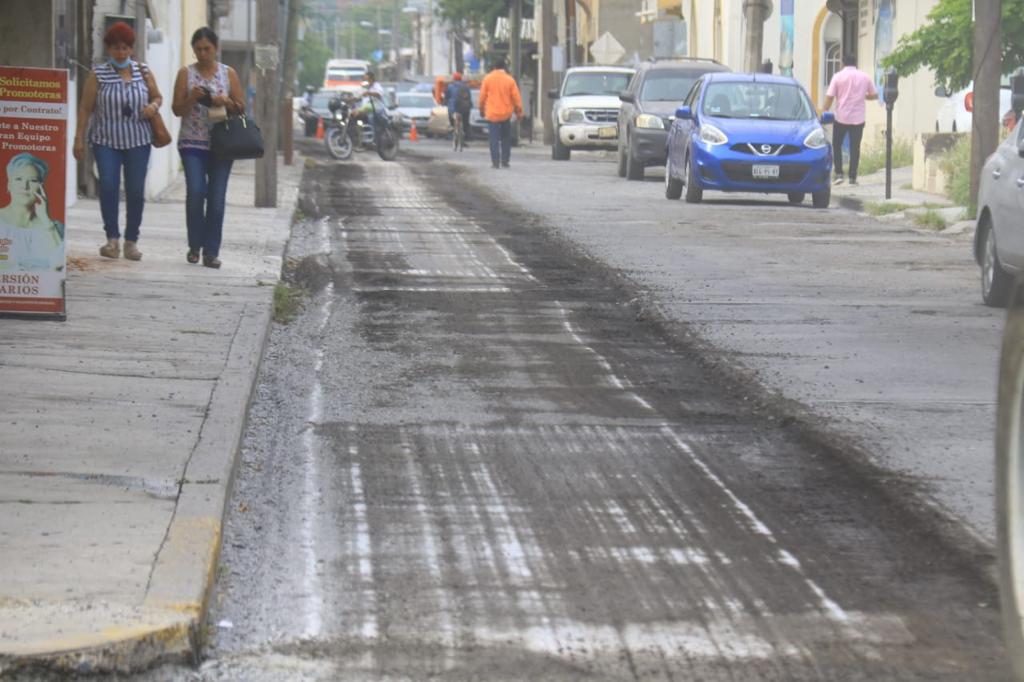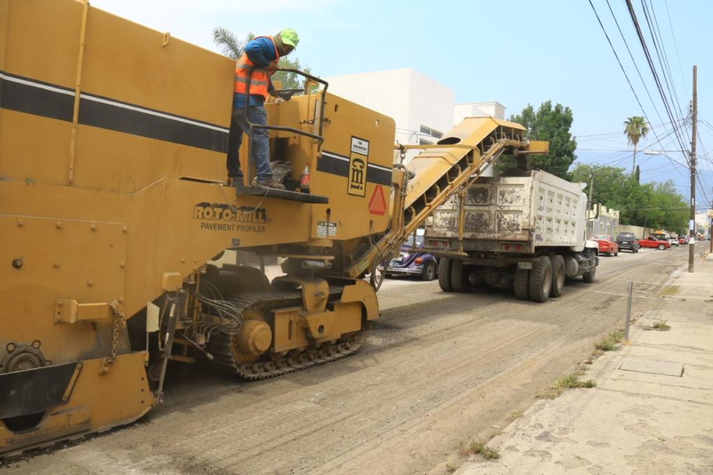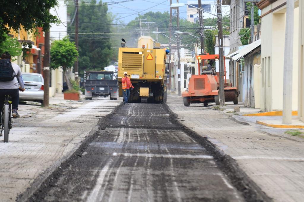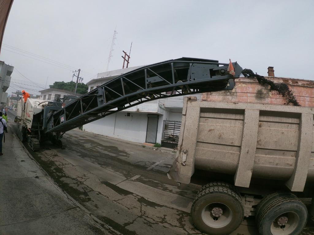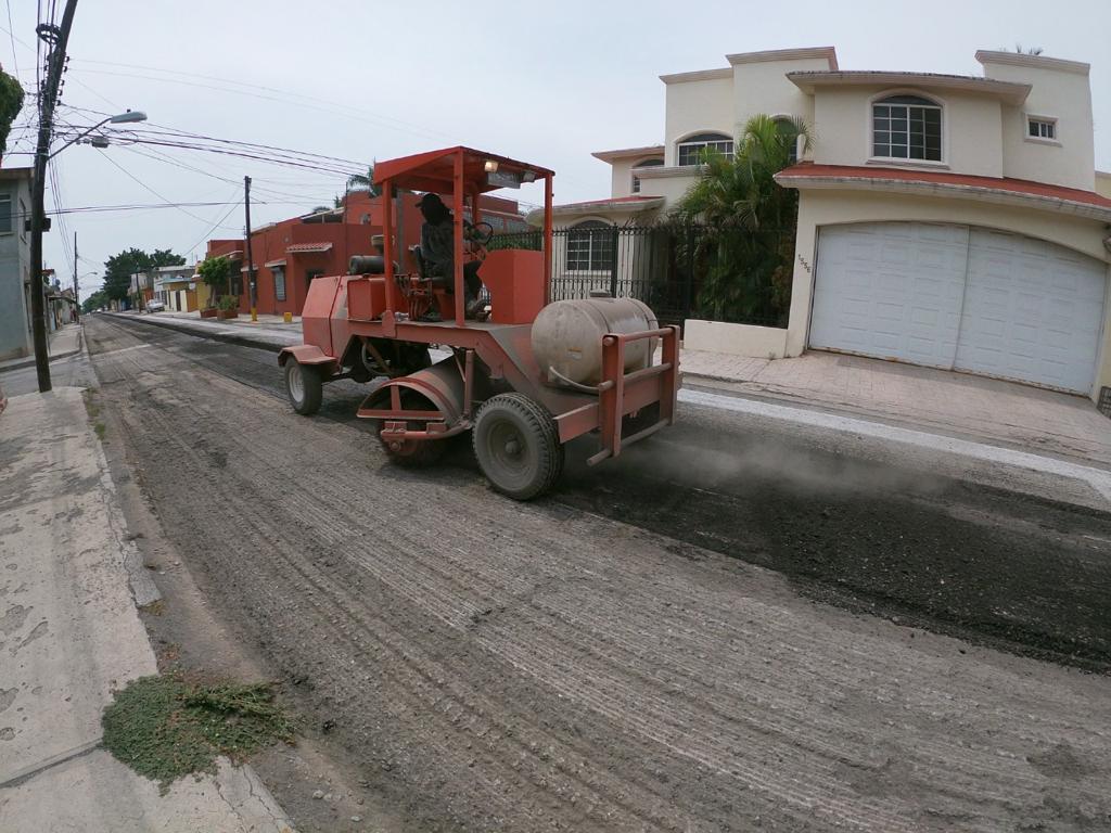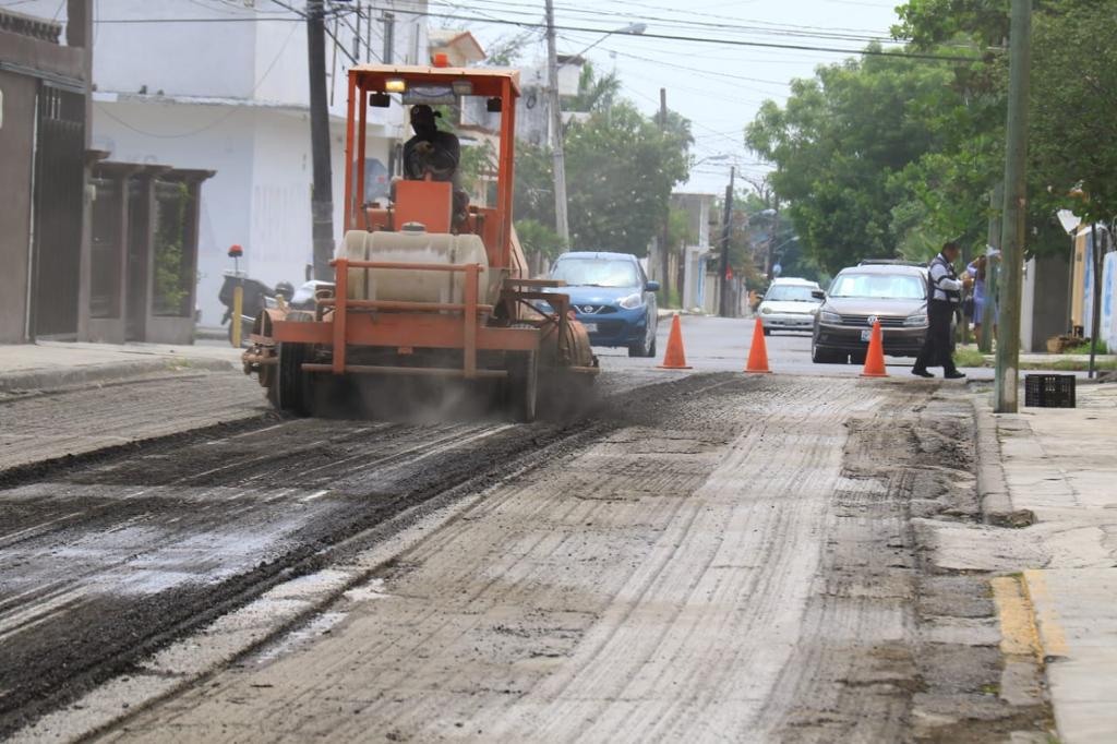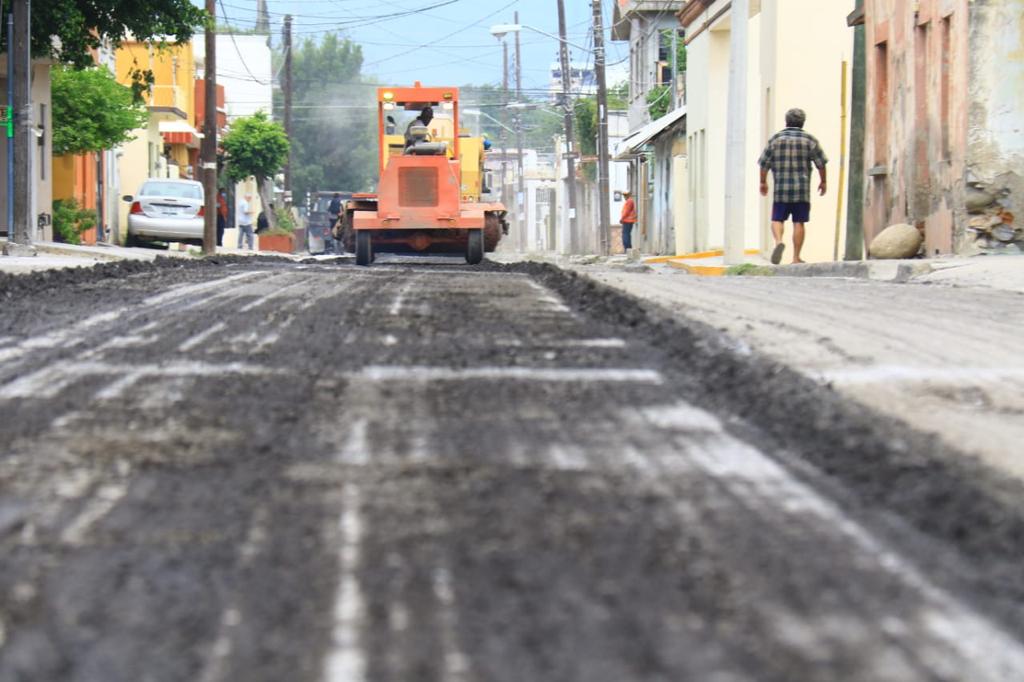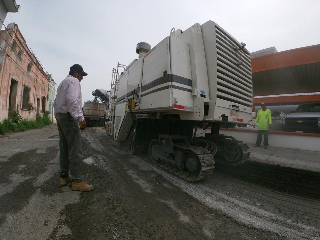 Los trabajos de fresado con la remoción del pavimento dañado y el reencarpetado con la instalación de la nueva cinta asfáltica que realiza la Secretaría de Obras Públicas Municipales se desarrolla de manera paralela en la calle 12 de Alberto Carrera Torres a Nicolás Bravo.