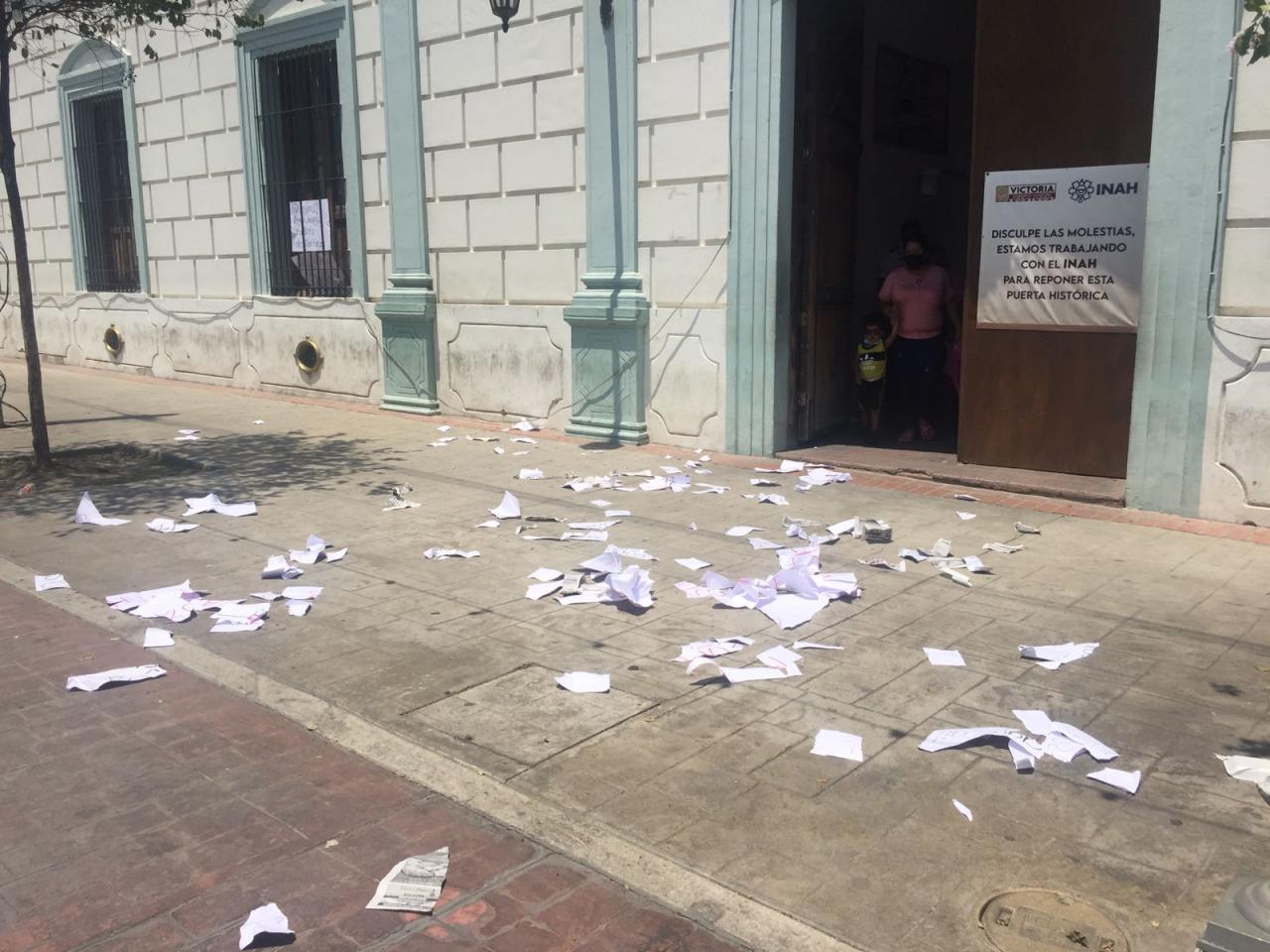 Después de manifestarse por alrededor de 40 minutos, y tratando a la vez de abrir la puerta de la oficina del Alcalde, las manifestantes rompieron las cartulinas que traían y tiraron la basura en el acceso a la Presidencia Municipal.