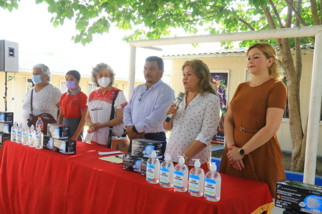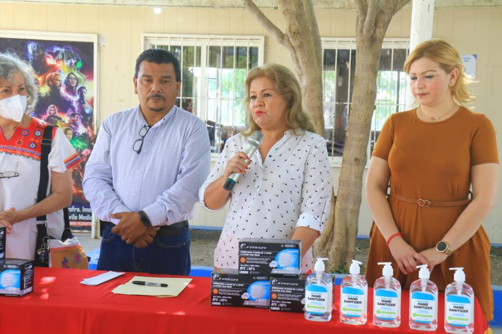 “Por la salud de Victoria estaremos todos pendientes aún cuando nos marque semáforo verde, esas son las indicaciones del alcalde Eduardo Gattás Báez”, destacó la Secretaria de Bienestar Social Mercedes Lorena Zapata Medina al encabezar la entrega de gel antibacterial y cubrebocas a cientos de alumnos de estos centros educativos.