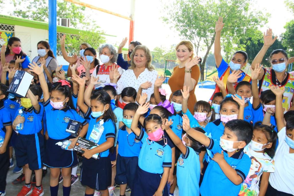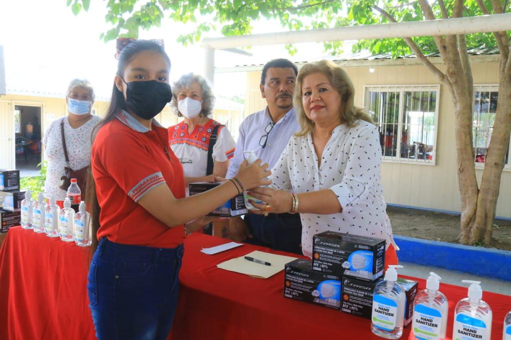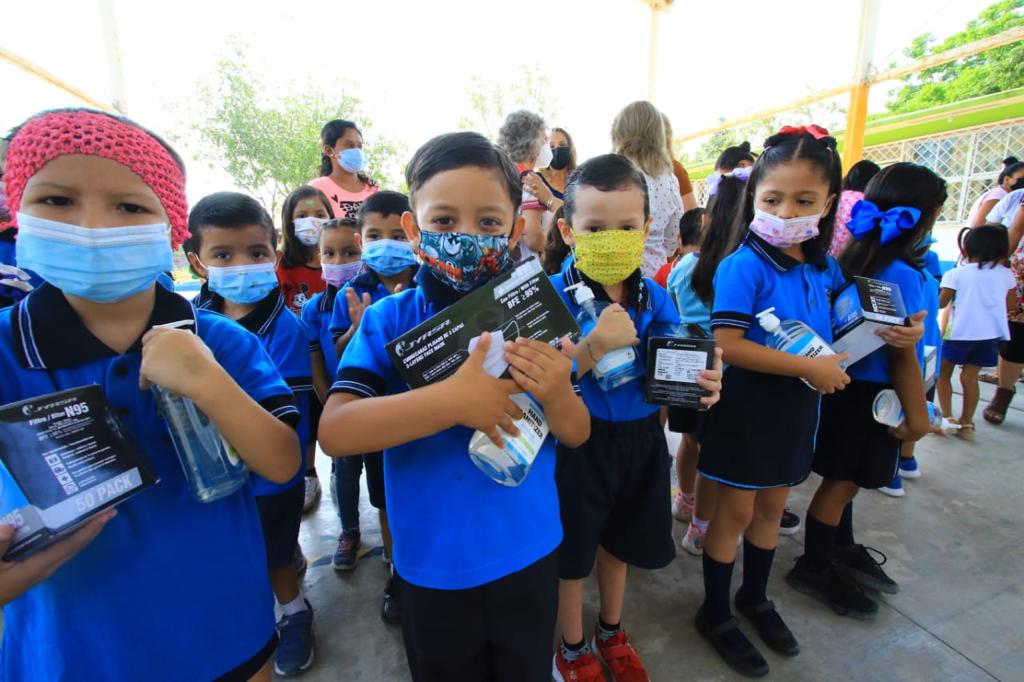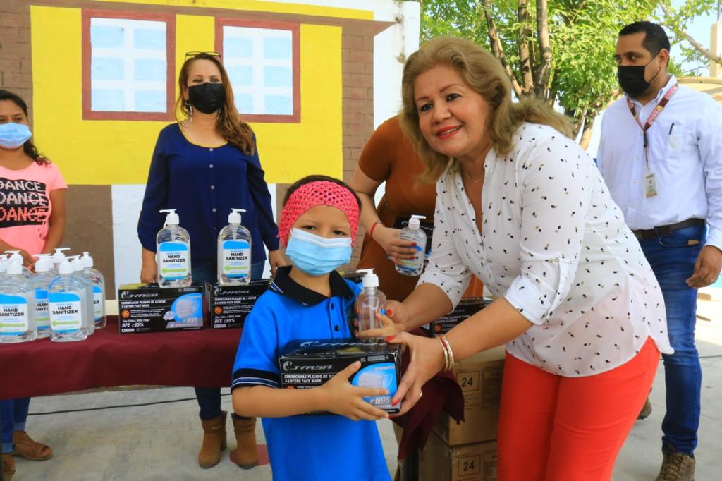Cd. Victoria.- Para no bajar la guardia y seguir cuidando a los menores contra el COVID-19, el Gobierno Municipal de Victoria que preside Eduardo Gattás Báez entregó kits de salud a más de 400 alumnos de la escuela primaria Distribuidores Nissan N° 37 y el jardín de niños Club Rotario Villa de Aguayo de la colonia Vamos Tamaulipas.
