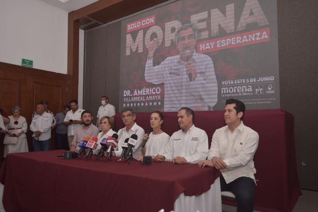 En conferencia de prensa, este domingo por la tarde, y acompañada por el candidato a la gubernatura del estado por Morena, PVEM y PT, Sheinbaum hizo un llamado para que en Tamaulipas se fortalezca la democracia y se respete la voluntad popular.