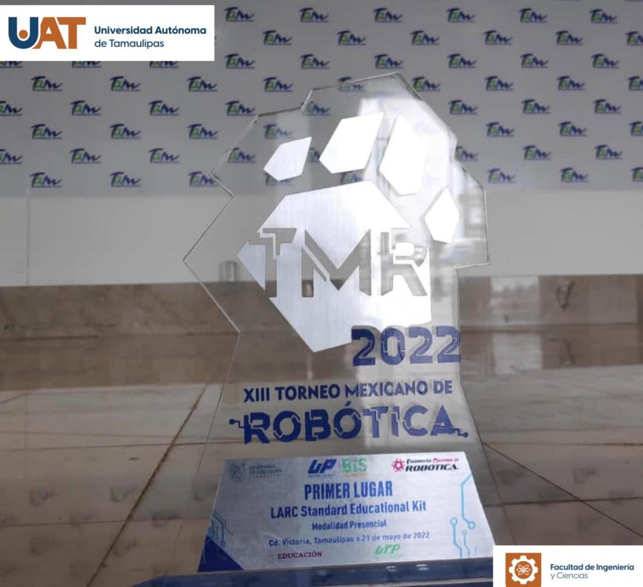 Estudiantes de la Facultad de Ingeniería y Ciencias (FIC) de la Universidad Autónoma de Tamaulipas (UAT) obtuvieron el primer lugar en dos categorías del XIII Torneo Mexicano de Robótica (TMR) 2022, que se realizó del 19 al 21 de mayo en el Polyforum de Ciudad Victoria.