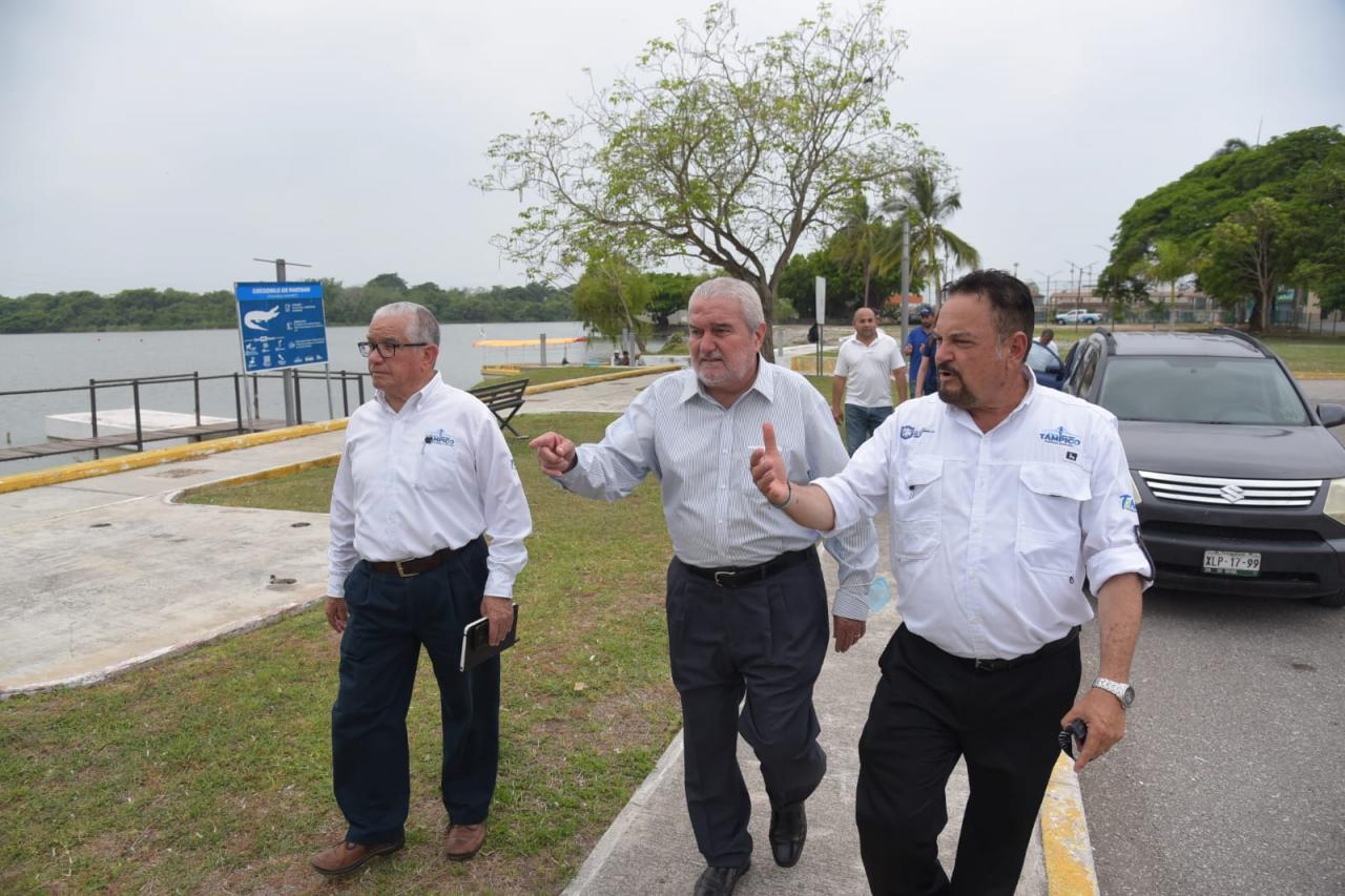 Fernando Alzaga visitó además el parque de la colonia Sierra Morena, donde se llevan a cabo trabajos de rehabilitación integral en este espacio recreativo y que, desde hace unos días, cuenta con un imponente reloj centenario donado por el Club Rotario Tampico.