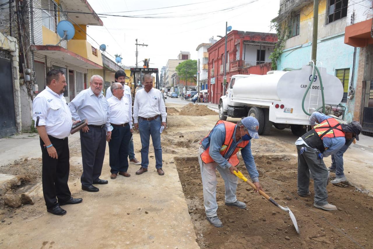 Alzaga Madaria estuvo en primer término en la calle Salvador Díaz Mirón de la zona centro donde se lleva a cabo la reposición del pavimento a base de concreto hidráulico, en el tramo comprendido entre las calles Dr. Carlos Canseco y Dr. Antonio Matienzo.