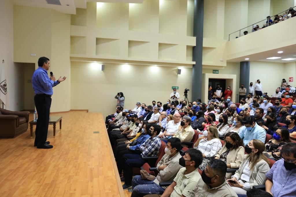Acompañado de la Rectora IEST Anáhuac, Gloria Laura Septién Crespo, el mandatario dirigió un mensaje a los estudiantes de las diferentes carreras basándose en temas prioritarios durante su administración como Seguridad Pública, Economía y Comercio, colaboración interinstitucional con autoridades estadounidenses, estrategia de mejoramiento de infraestructura urbana, energías limpias, competitividad, entre otros.
