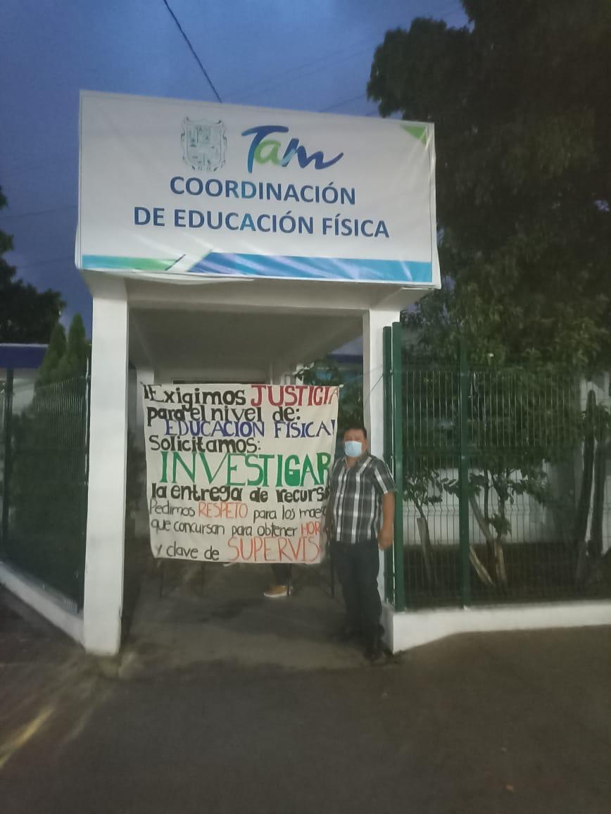 Exigiendo la destitución del coordinador de Educación Física a nivel estado profesor Arturo Pozos Cervantes, un grupo de maestros provenientes de diferentes municipios de la entidad mantienen una protesta en la Coordinación Estatal de Educación Física.