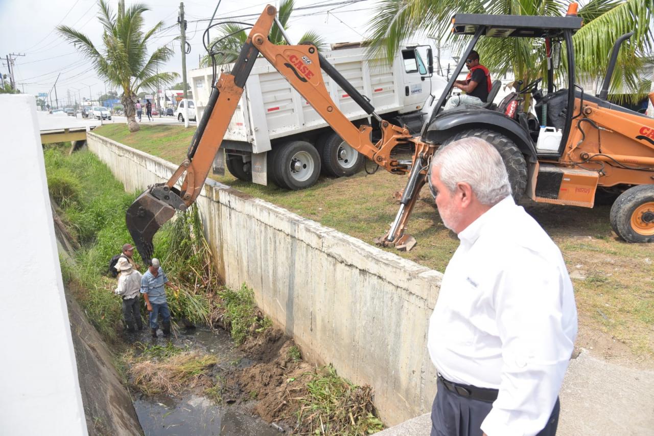 Asimismo mencionó que cuadrillas de trabajadores realizan la limpieza y desazolve de toda la red de canales y drenes pluviales del municipio, a fin de que ésta opere eficientemente ante la próxima temporada de lluvias.