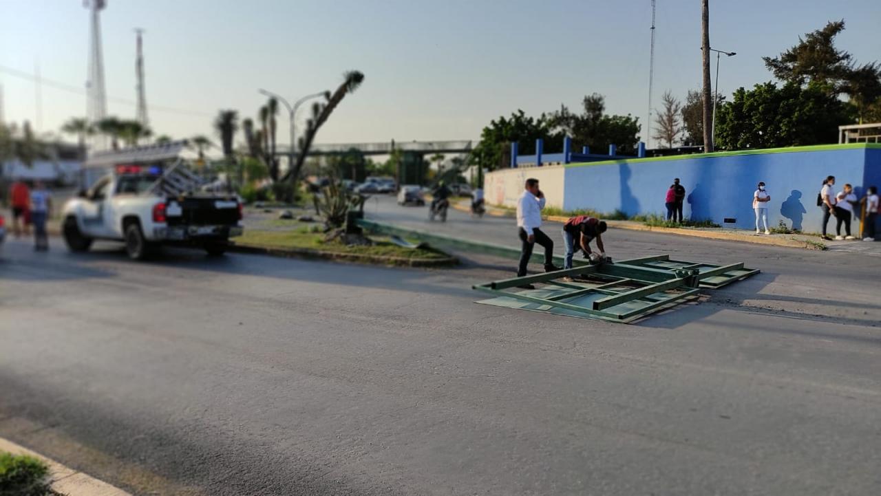 Fue a consecuencia de una ventisca que se registró a temprana hora de hoy lunes cuando el enorme letrero que se ubica a unos pasos del crucero con la avenida América Española colapsó al quedar "capados" dos tornillos que fijaban dicho anuncio sobre una base de concreto.