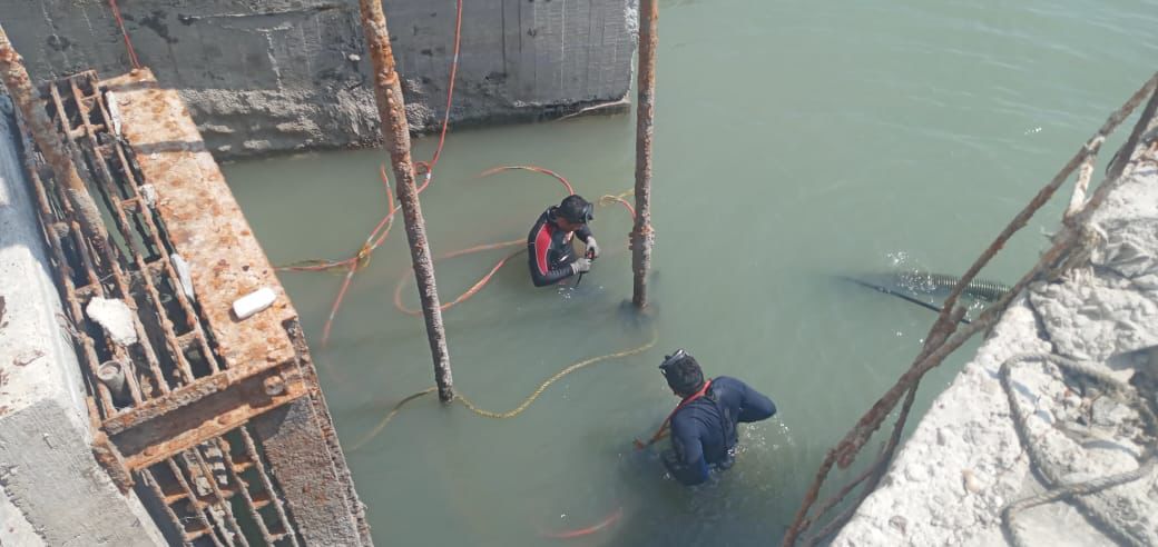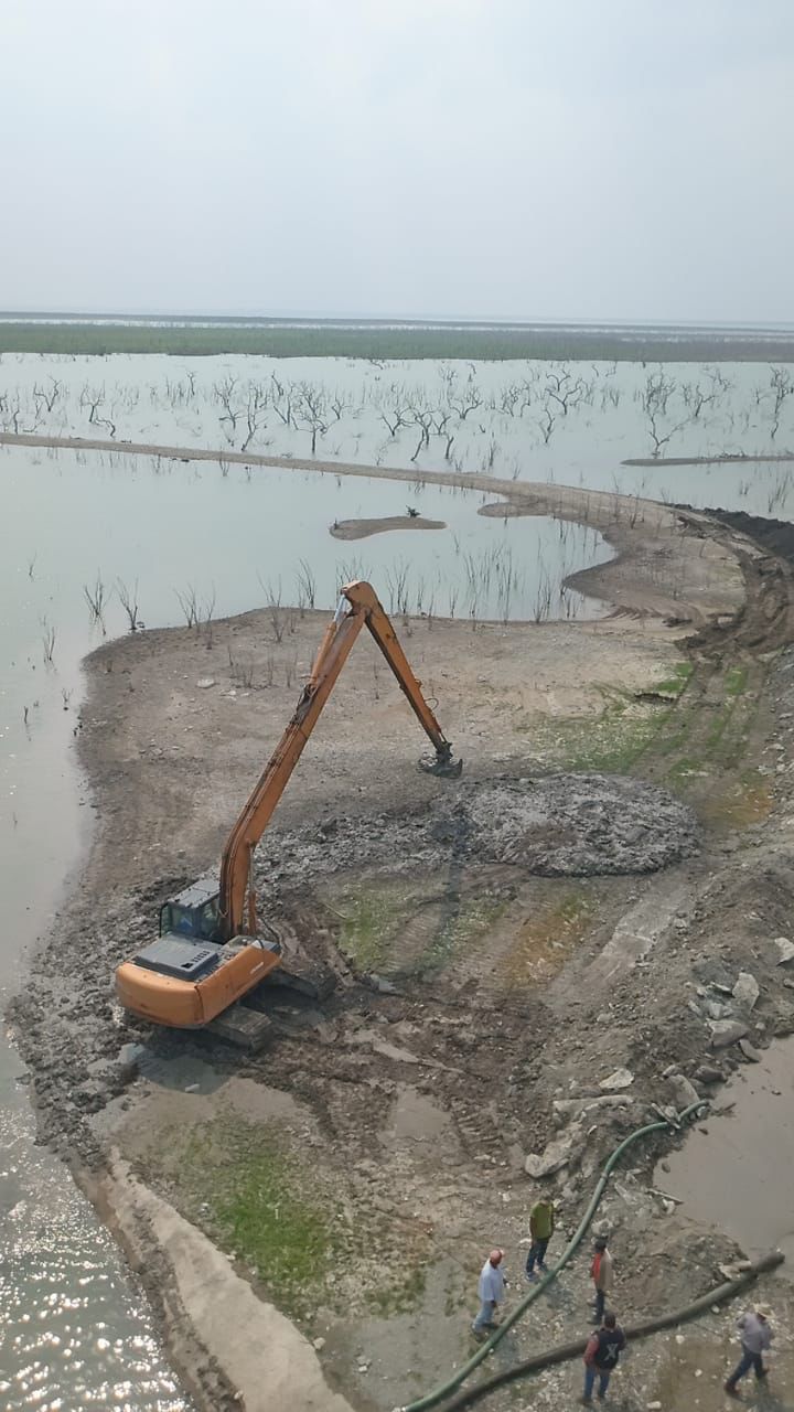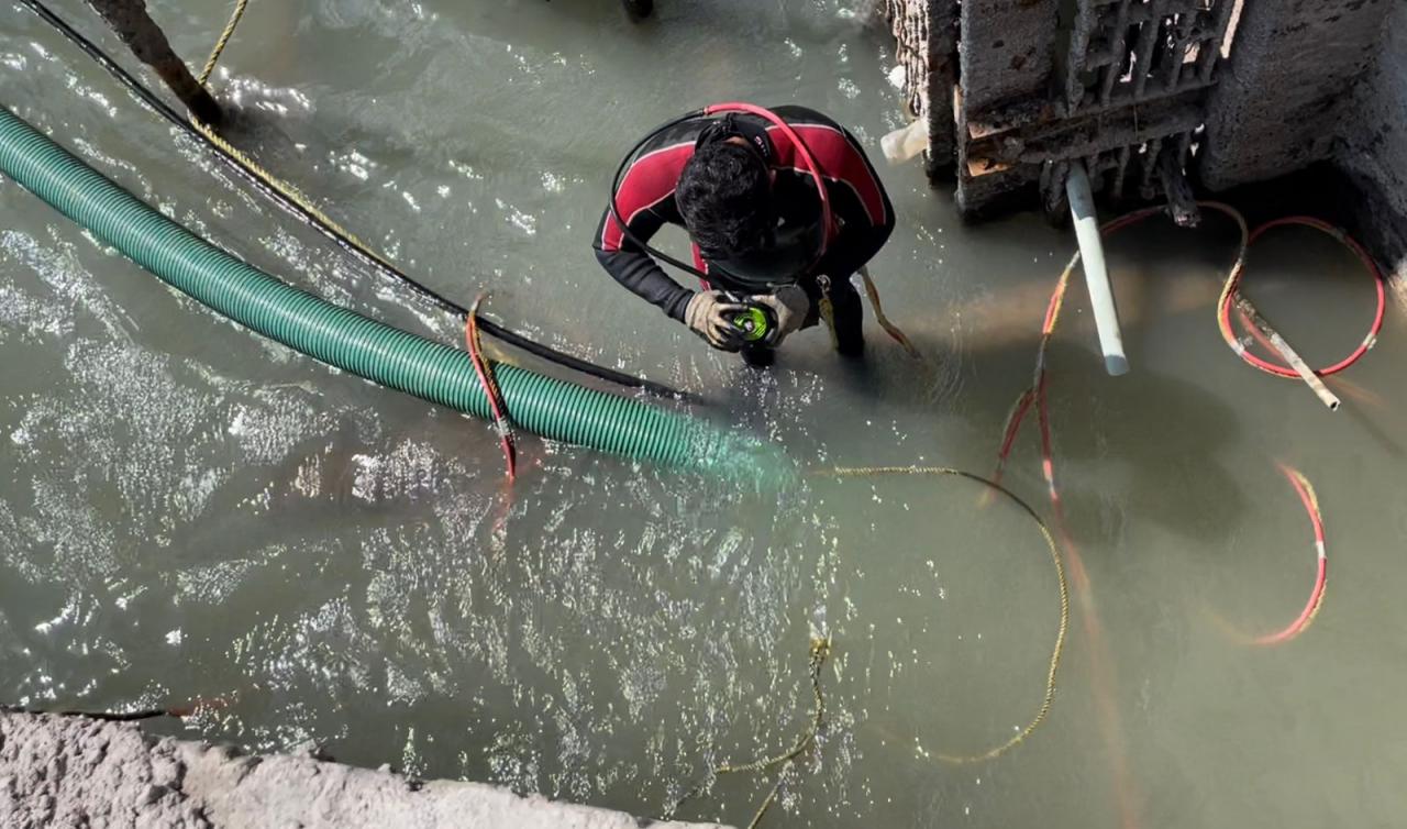 En las obras realizadas del 23 al 28 de mayo, se utilizaron bombas de succión de lodo controladas por equipo especializado conformado por cuatro buzos certificados con equipo completo y una excavadora de brazo largo.