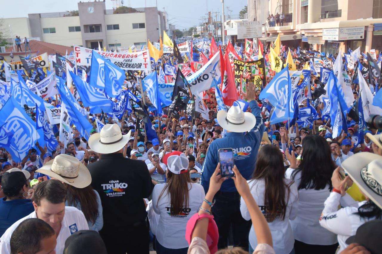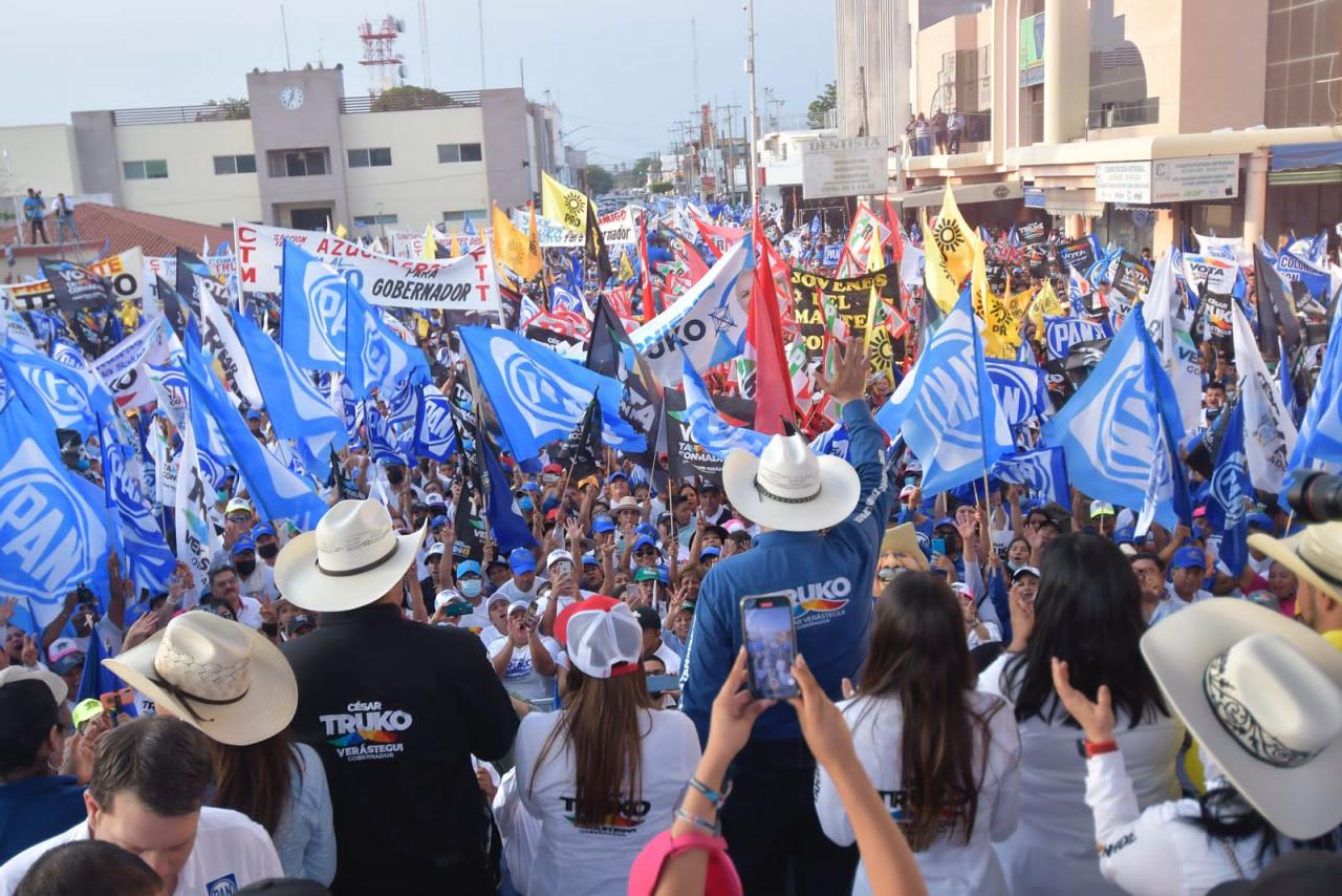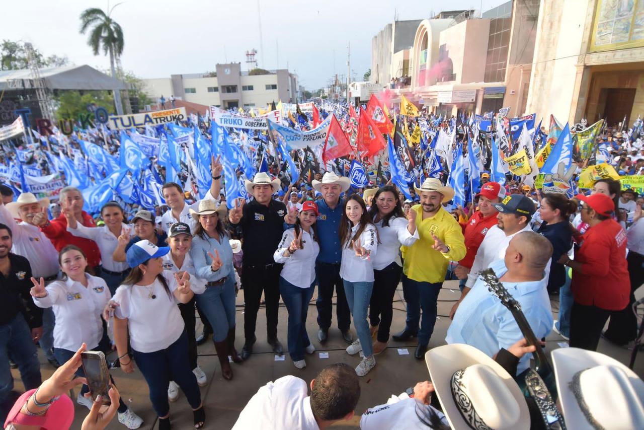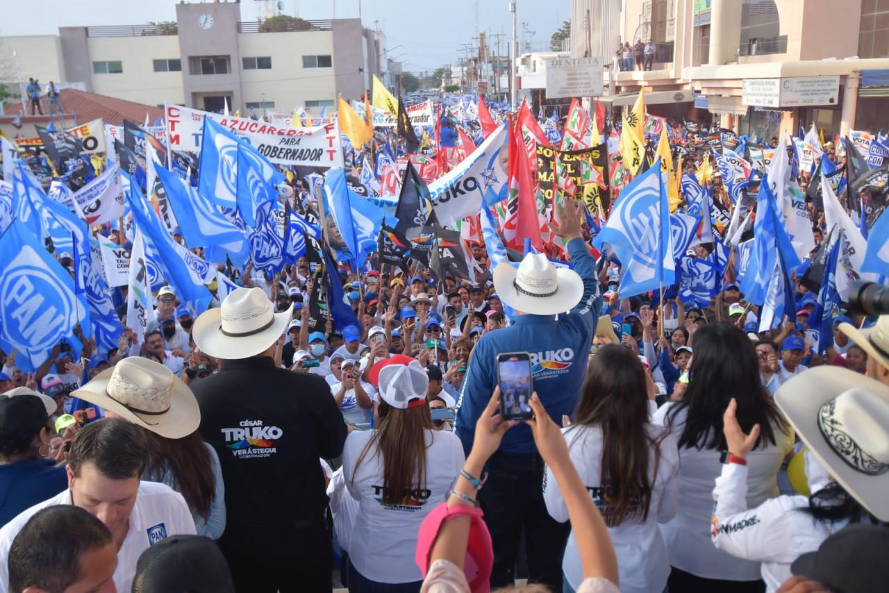 Mante, Tam. - Miles de ciudadanos se dieron cita para refrendar que son parte del proyecto que encabeza César Truko Verástegui, candidato a la gubernatura por la alianza “Va por Tamaulipas”, quien reiteró ante la gente de Nuevo Morelos, Antiguo Morelos y Mante que irán juntos, como uno solo a defender el triunfo este próximo 5 de junio.