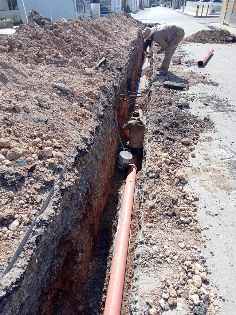 Para evitar fugas, en este sector fueron rehabilitados 60 metros de tubería colapsada de la red general de drenaje sanitario de 8” de diámetro, una descarga domiciliaria de tubería de 6” de diámetro y se limpiaron y desazolvaron 230 metros de tubería de la red de drenaje sanitario de 8” de diámetro, al igual que 17 descargas domiciliarias.