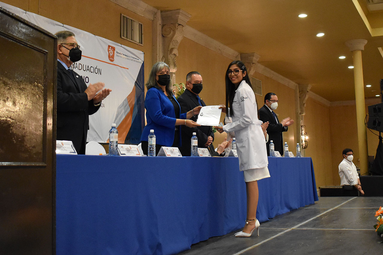 Un total de 74 estudiantes de la Universidad Autónoma de Tamaulipas (UAT) recibieron el reconocimiento por la culminación de sus estudios del programa educativo de Médico Cirujano que imparte la Facultad de Medicina e Ingeniería en Sistemas Computacionales de Matamoros (FMISCM), correspondiente a la generación 2017-2022.
