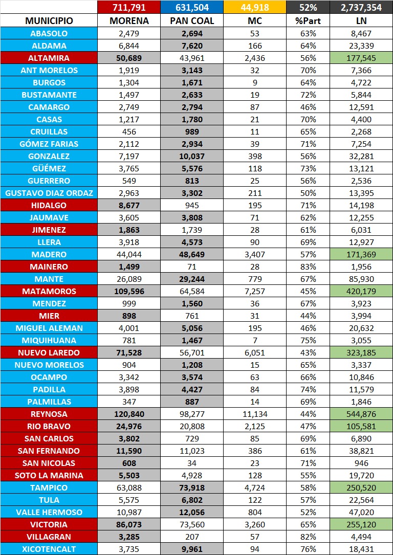 Por otra parte, también se resalta que el municipio de Altamira, fue el único de los tres municipios conurbados, que le dio el triunfo al candidato de Morena (ver cuadro anexo).
