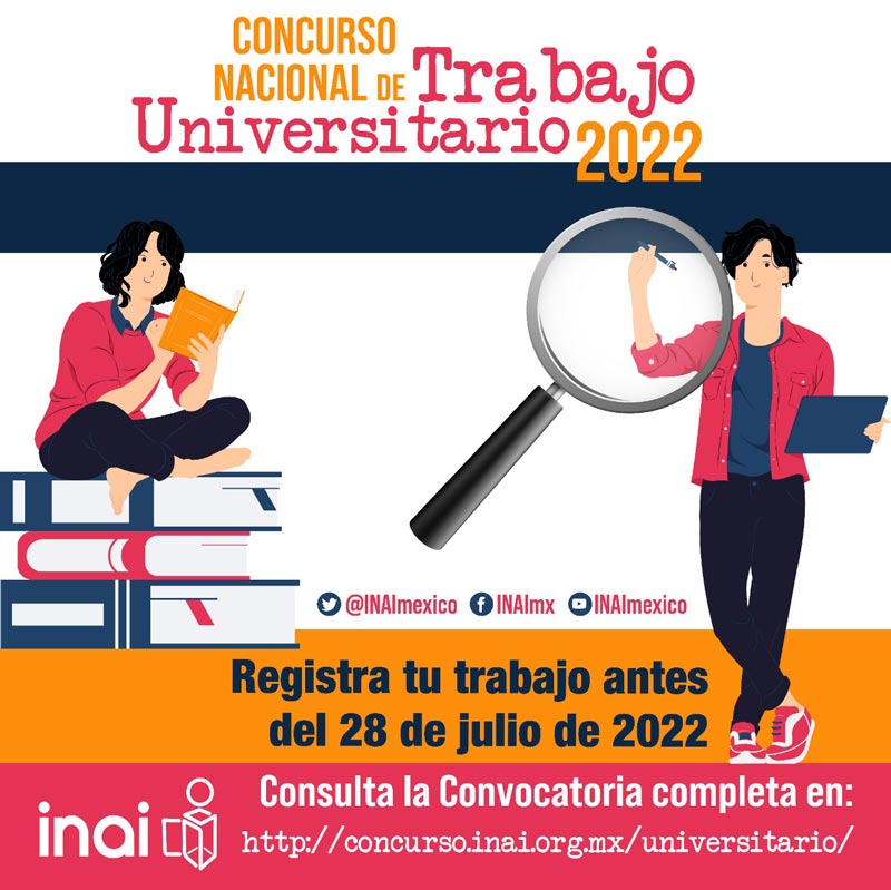 La Universidad Autónoma de Tamaulipas (UAT) hace extensiva la invitación para que estudiantes de licenciatura y posgrado participen en el Concurso Nacional de Trabajo Universitario 2022 “El ejercicio del derecho a saber a través de tecnologías de la transparencia”, que organiza el Instituto Nacional de Transparencia, Acceso a la Información y Protección de Datos Personales (INAI).