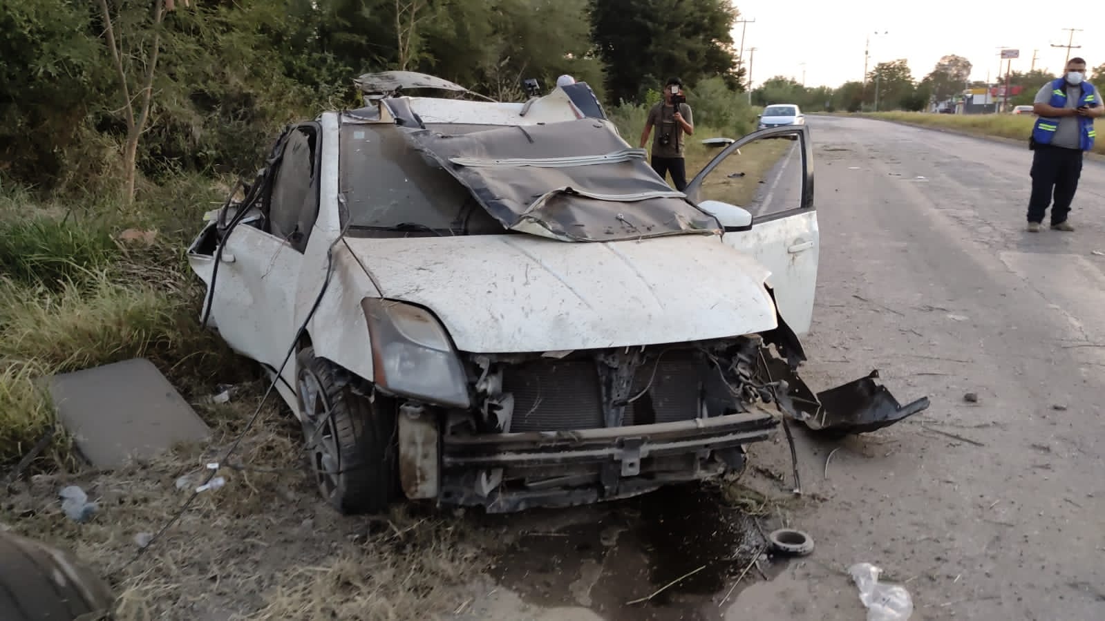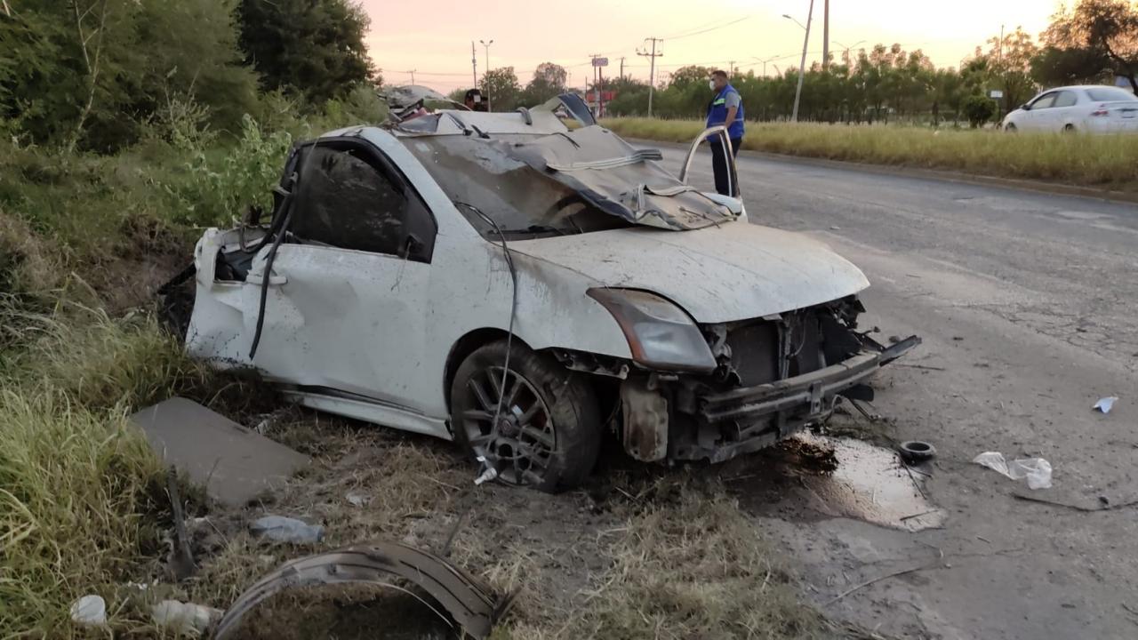De acuerdo con los datos recabados en el lugar, el aparatoso accidente tipo salida de camino con volcadura ocurrió cuando el automóvil Sentra circulaba por el libramiento Portes Gil en sentido de norte a sur.