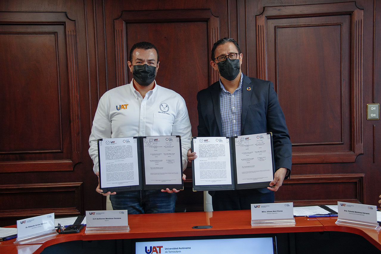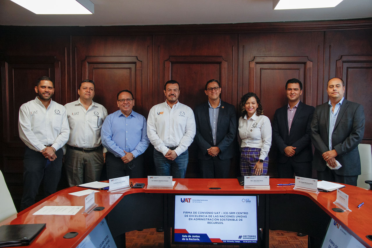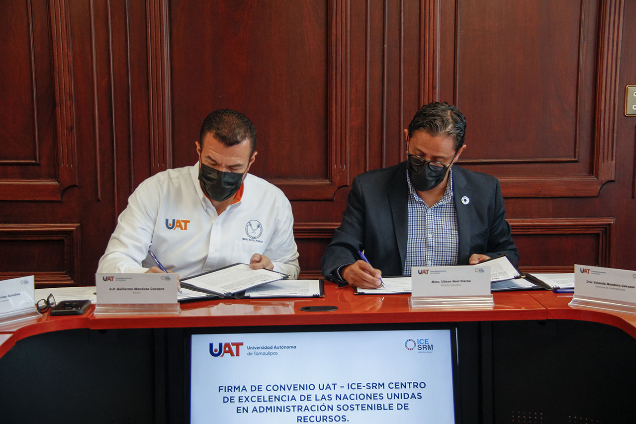La Universidad Autónoma de Tamaulipas (UAT) y el Centro Internacional de Excelencia de las Naciones Unidas en Administración Sostenible de Recursos (ICE-SRM, por sus siglas en inglés) llevaron a cabo la firma de un convenio que sienta las bases para realizar acciones enfocadas en alcanzar los Objetivos de Desarrollo Sostenible (ODS).