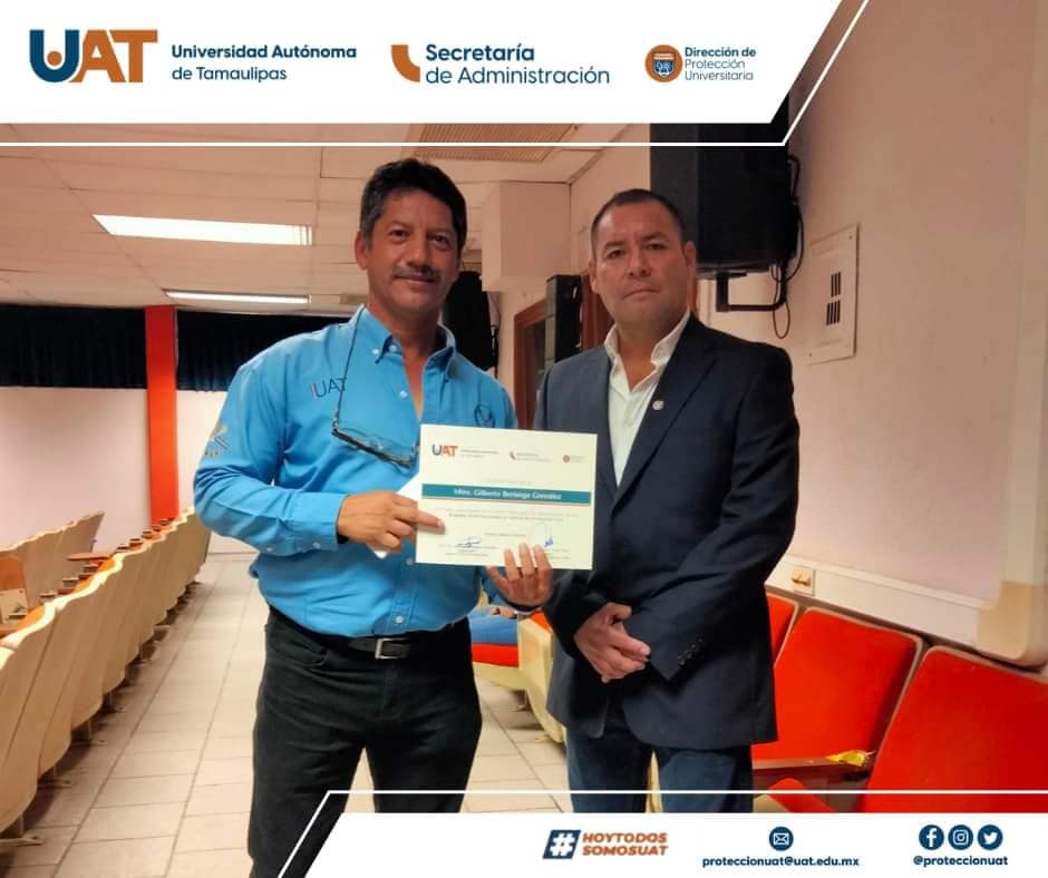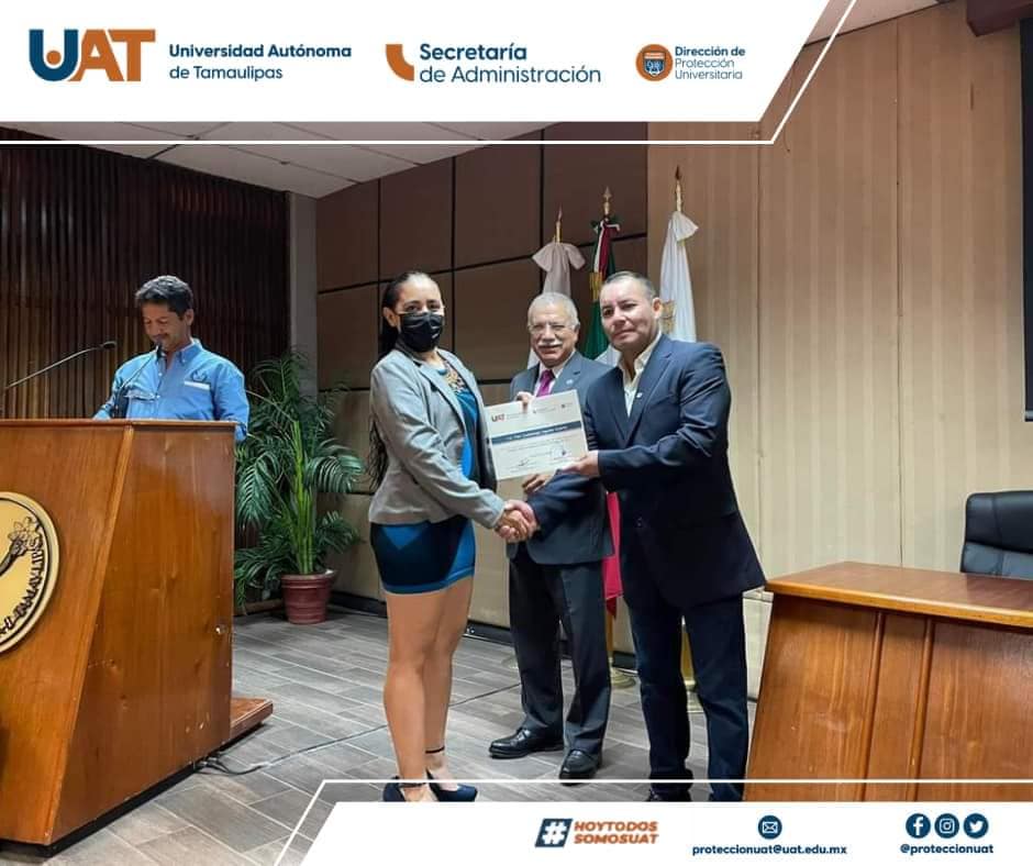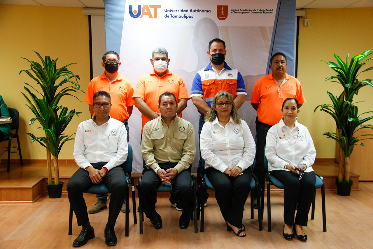 La Universidad Autónoma de Tamaulipas (UAT) fomenta la integración de brigadas de protección civil capacitando al personal de las dependencias universitarias en protocolos, procedimientos y guías de activación que permitan enfrentar, prevenir y atender accidentes de trabajo, para garantizar la salud y seguridad de estudiantes, docentes, personal directivo y administrativo.